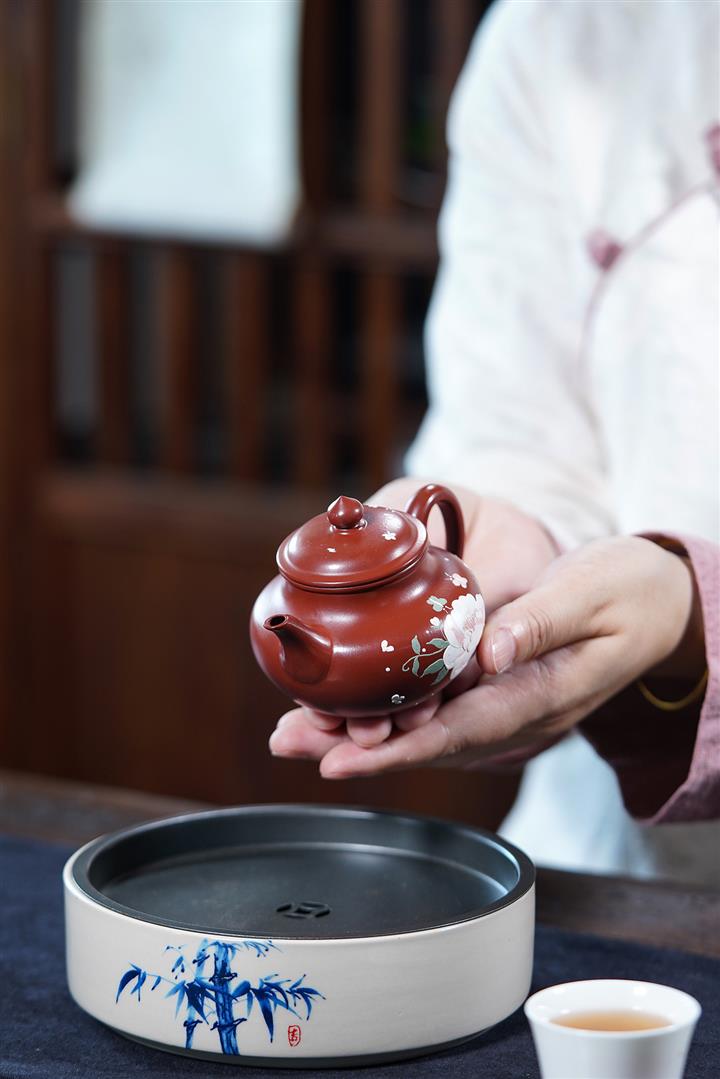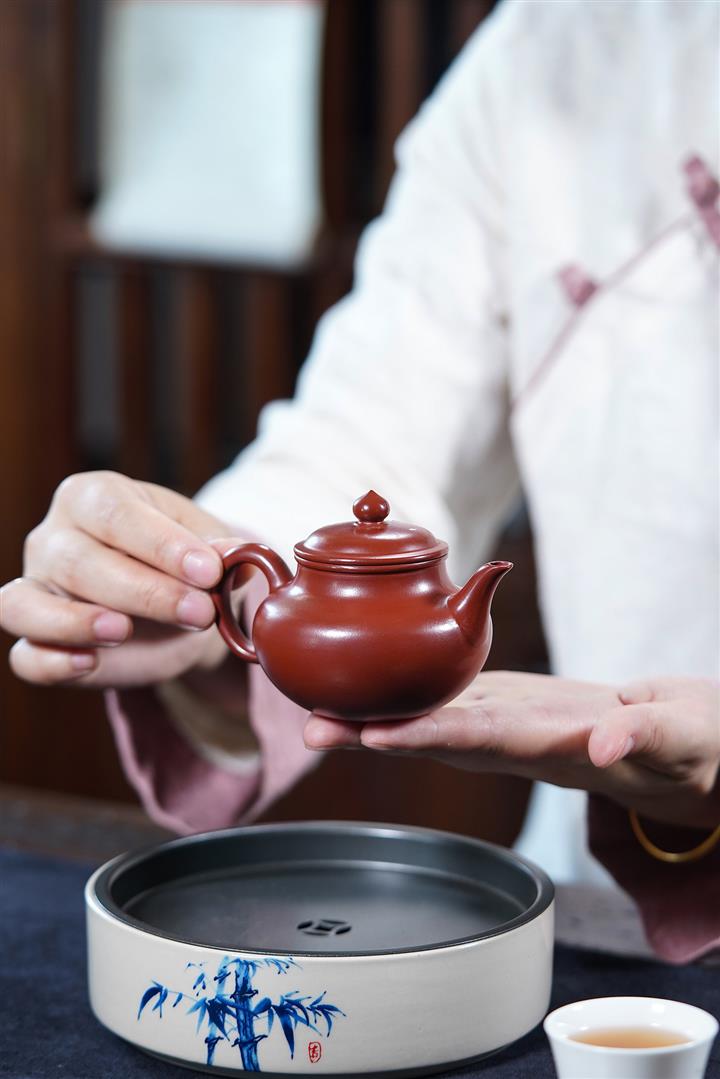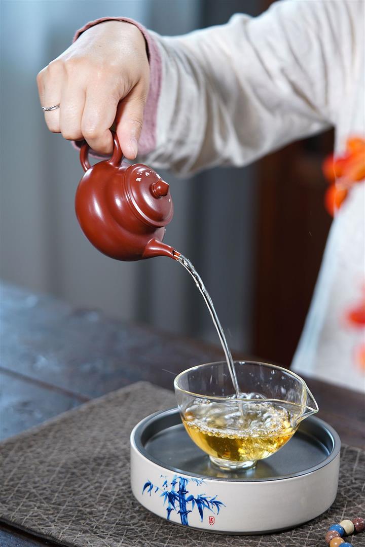 【泥料特點】砂土氣重,似淳實農民,日久使用,漸露鋒芒,養成變化,溫潤莊重。紫砂是壹種雙重氣孔結構的多孔性材質,氣孔微細,密度高。用紫砂壺沏茶,不失原味,且香不渙散,得茶之真香真味。紫砂使用越久,壺身色澤越發光亮照人,氣韻溫雅。紫砂壺長久使用器身會因撫摸擦拭,變得越發溫潤光澤。