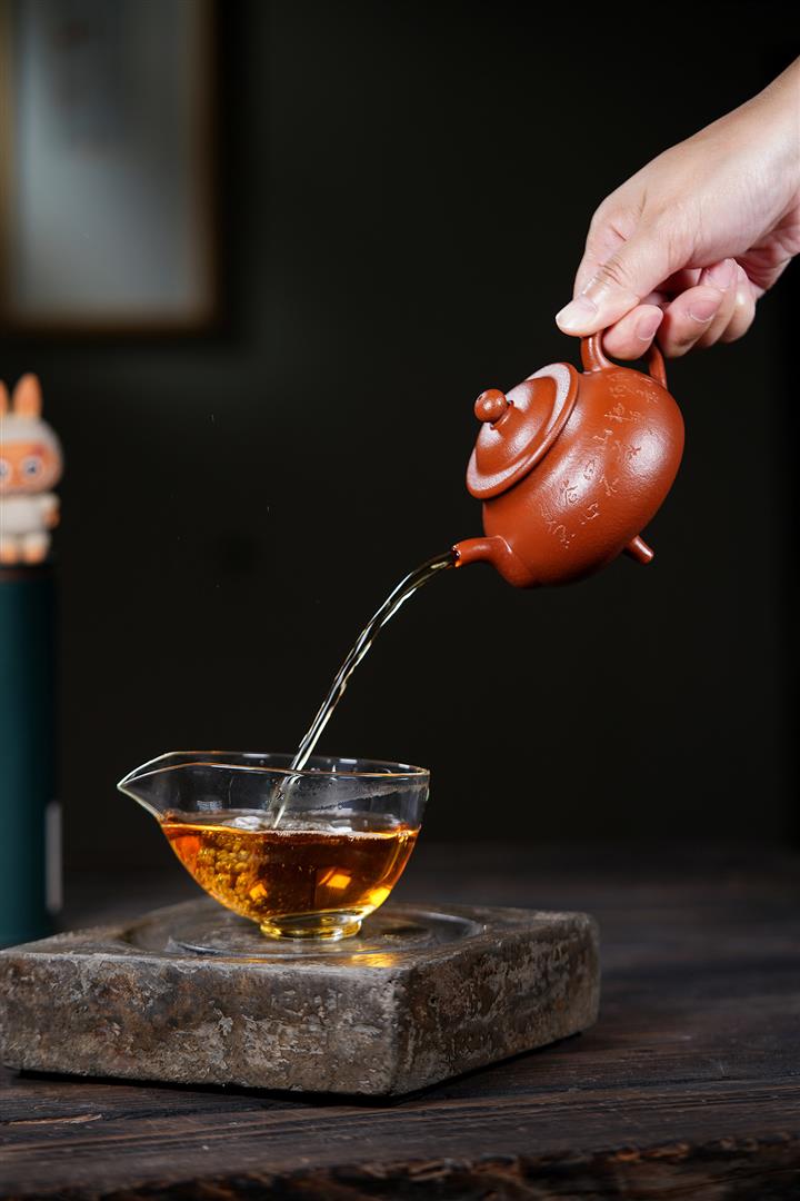 【泥料特點】砂土氣重,似淳實農民,日久使用,漸露鋒芒,養成變化,溫潤莊重。紫砂是壹種雙重氣孔結構的多孔性材質,氣孔微細,密度高。用紫砂壺沏茶,不失原味,且香不渙散,得茶之真香真味。紫砂使用越久,壺身色澤越發光亮照人,氣韻溫雅。紫砂壺長久使用器身會因撫摸擦拭,變得越發溫潤光澤。