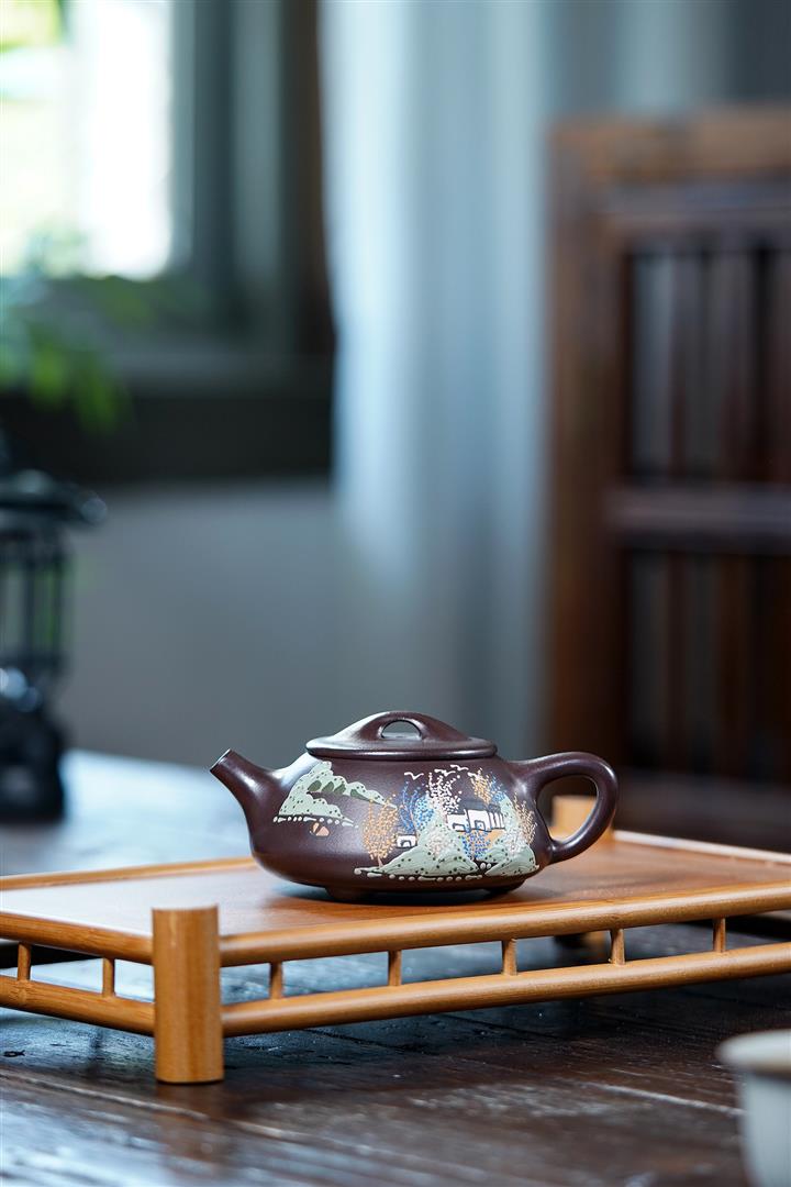 【作品介紹】此款壺形線條流暢,壺把,壺嘴,壺身壹氣呵成栩栩如生,是收藏把玩的好壺,泥料色澤古樸典雅,日久使用,漸露鋒芒,養成變化快,溫潤莊重,用其泡茶,使用的年代久,壺身就溫潤,泡出來的茶湯也就醇郁芳馨。
