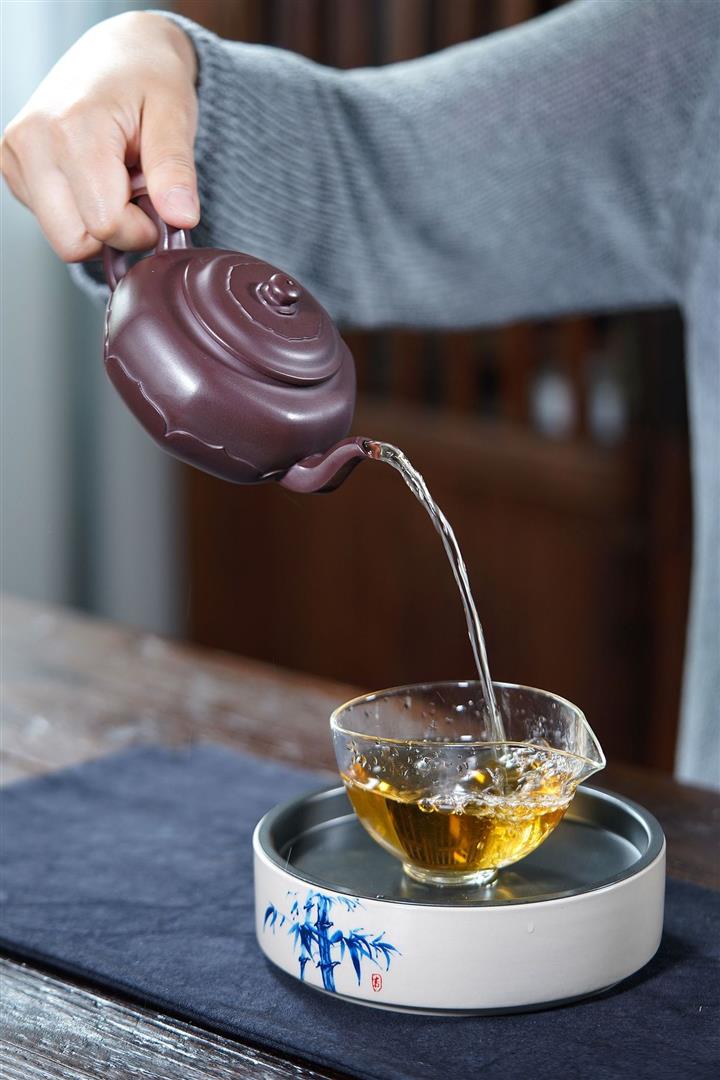 【泥料特點】砂土氣重,似淳實農民,日久使用,漸露鋒芒,養成變化,溫潤莊重。紫砂是壹種雙重氣孔結構的多孔性材質,氣孔微細,密度高。用紫砂壺沏茶,不失原味,且香不渙散,得茶之真香真味。紫砂使用越久,壺身色澤越發光亮照人,氣韻溫雅。紫砂壺長久使用器身會因撫摸擦拭,變得越發溫潤光澤。