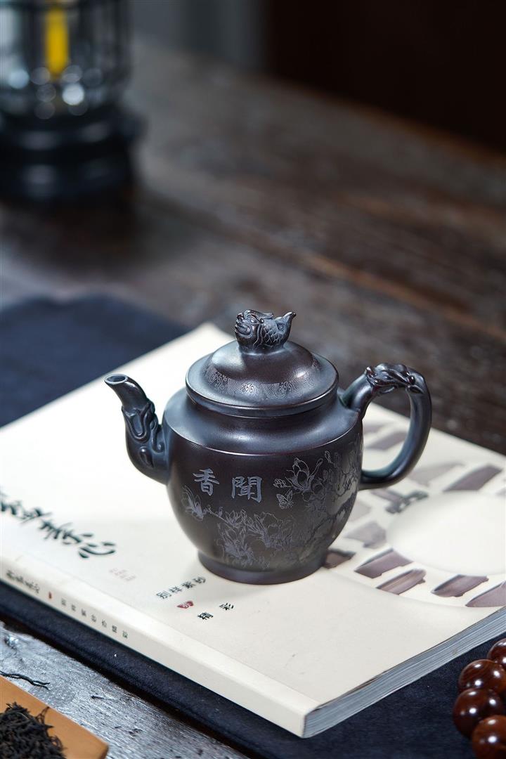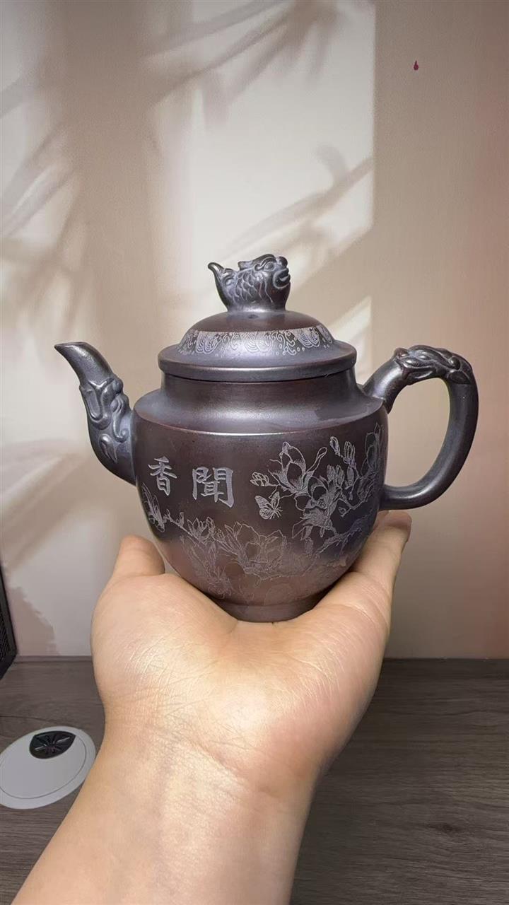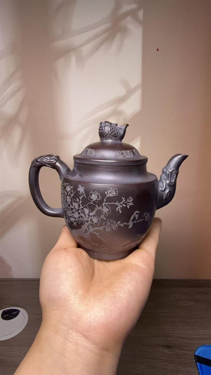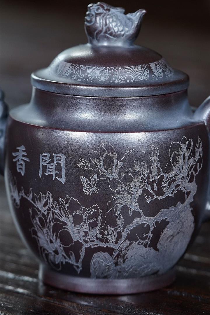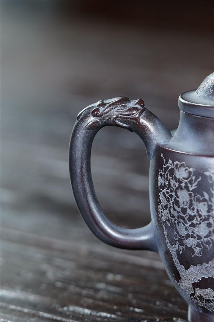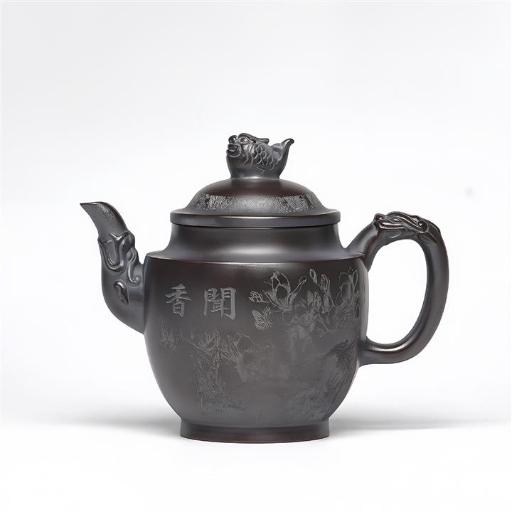 200cc原礦紫泥刻繪周盤茶壺POT8958