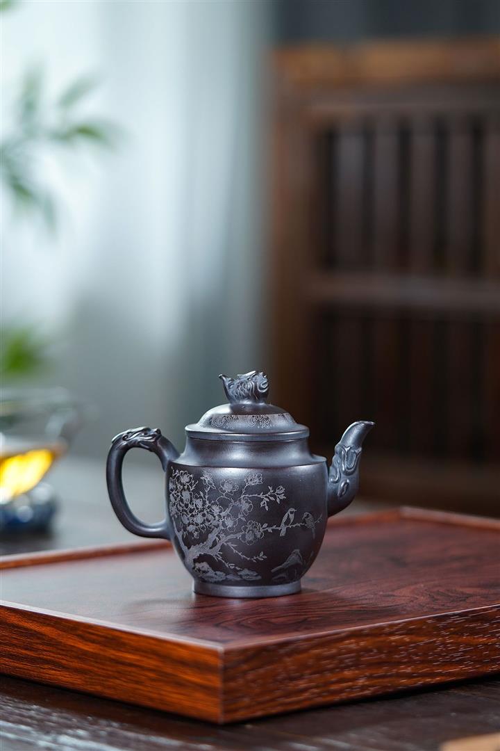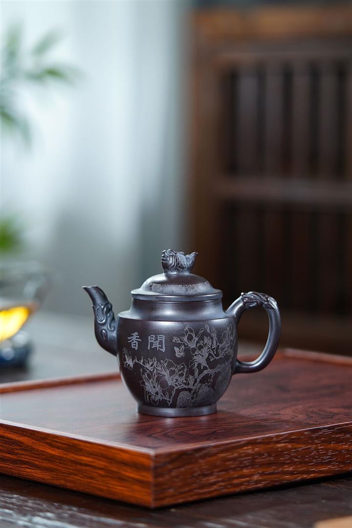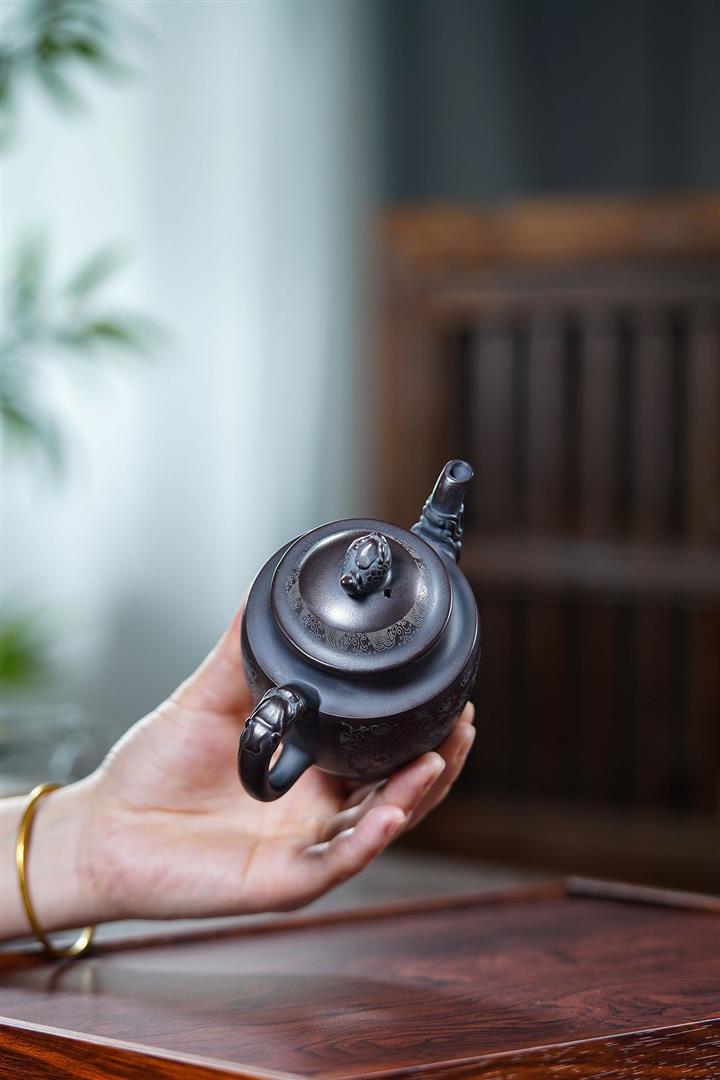 【作品介紹】此款壺形線條流暢,壺把,壺嘴,壺身壹氣呵成栩栩如生,是收藏把玩的好壺,泥料色澤古樸典雅,日久使用,漸露鋒芒,養成變化快,溫潤莊重,用其泡茶,使用的年代久,壺身就溫潤,泡出來的茶湯也就醇郁芳馨。
