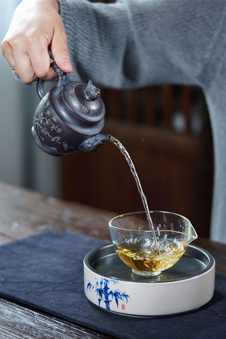 【泥料特點】砂土氣重,似淳實農民,日久使用,漸露鋒芒,養成變化,溫潤莊重。紫砂是壹種雙重氣孔結構的多孔性材質,氣孔微細,密度高。用紫砂壺沏茶,不失原味,且香不渙散,得茶之真香真味。紫砂使用越久,壺身色澤越發光亮照人,氣韻溫雅。紫砂壺長久使用器身會因撫摸擦拭,變得越發溫潤光澤。