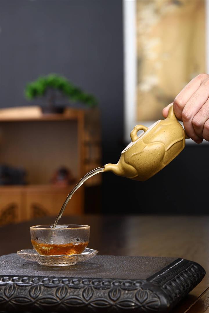 【泥料特點】砂土氣重,似淳實農民,日久使用,漸露鋒芒,養成變化,溫潤莊重。紫砂是壹種雙重氣孔結構的多孔性材質,氣孔微細,密度高。用紫砂壺沏茶,不失原味,且香不渙散,得茶之真香真味。紫砂使用越久,壺身色澤越發光亮照人,氣韻溫雅。紫砂壺長久使用器身會因撫摸擦拭,變得越發溫潤光澤。