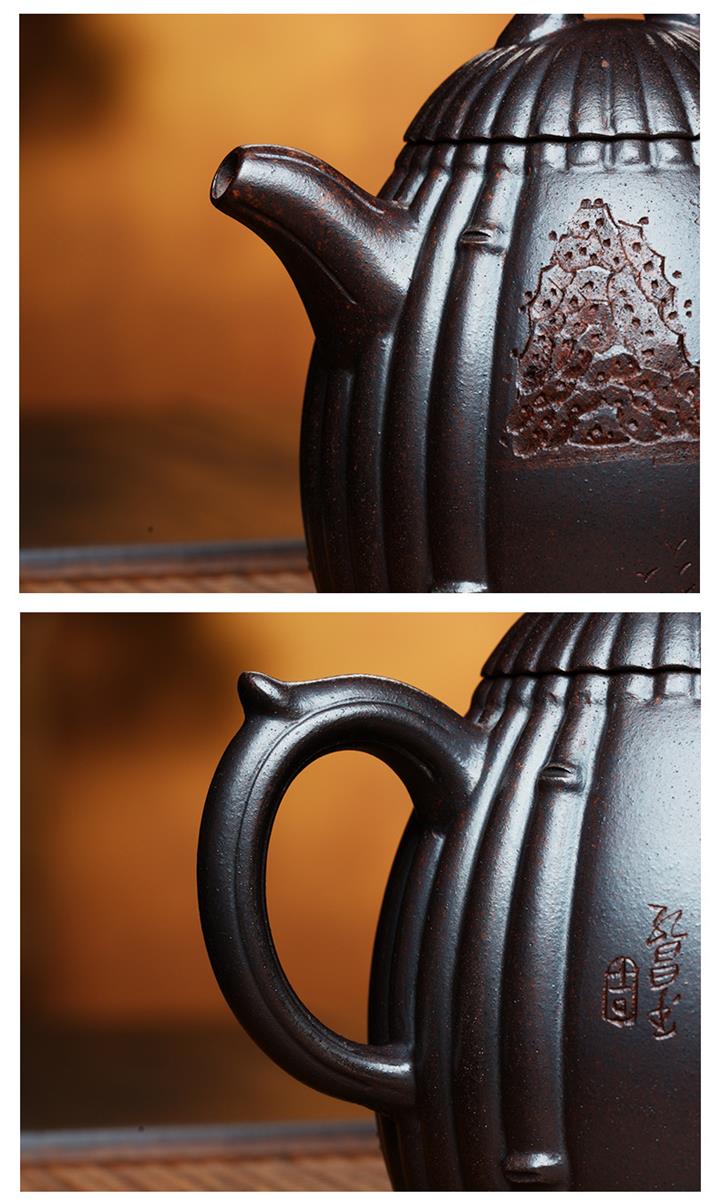 【作品介紹】此款壺形線條流暢,壺把,壺嘴,壺身壹氣呵成栩栩如生,是收藏把玩的好壺,泥料色澤古樸典雅,日久使用,漸露鋒芒,養成變化快,溫潤莊重,用其泡茶,使用的年代久,壺身就溫潤,泡出來的茶湯也就醇郁芳馨。
