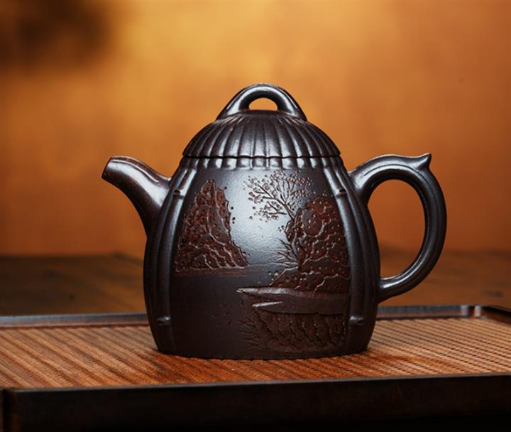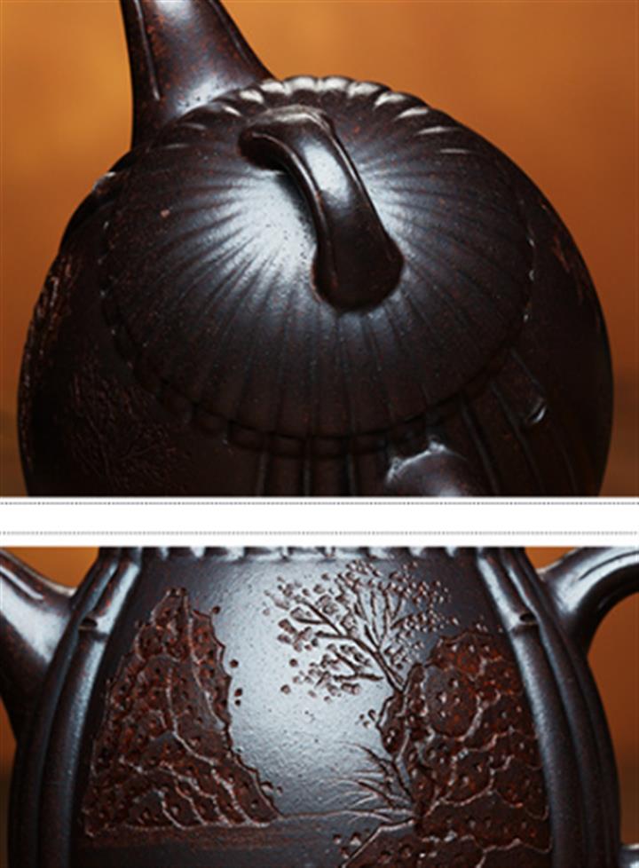 200cc原礦紫泥刻繪周盤茶壺POT8958