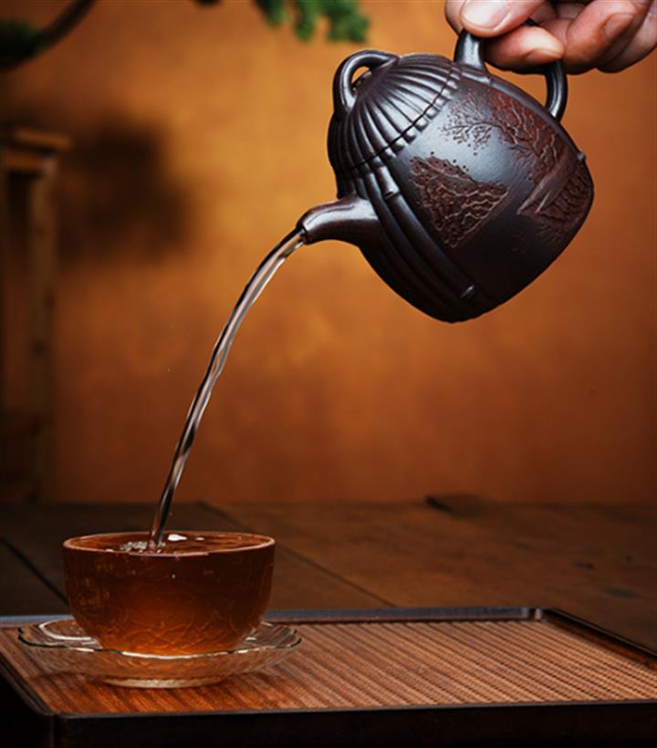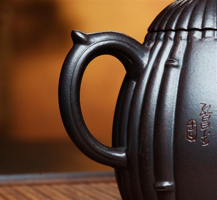 【泥料特點】砂土氣重,似淳實農民,日久使用,漸露鋒芒,養成變化,溫潤莊重。紫砂是壹種雙重氣孔結構的多孔性材質,氣孔微細,密度高。用紫砂壺沏茶,不失原味,且香不渙散,得茶之真香真味。紫砂使用越久,壺身色澤越發光亮照人,氣韻溫雅。紫砂壺長久使用器身會因撫摸擦拭,變得越發溫潤光澤。