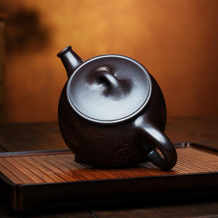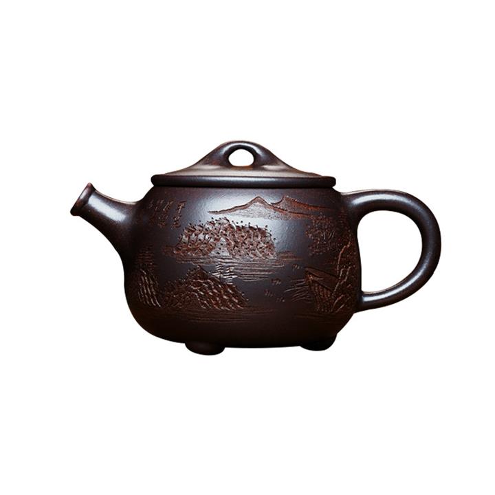 200cc原礦紫泥刻繪周盤茶壺POT8958