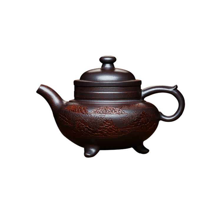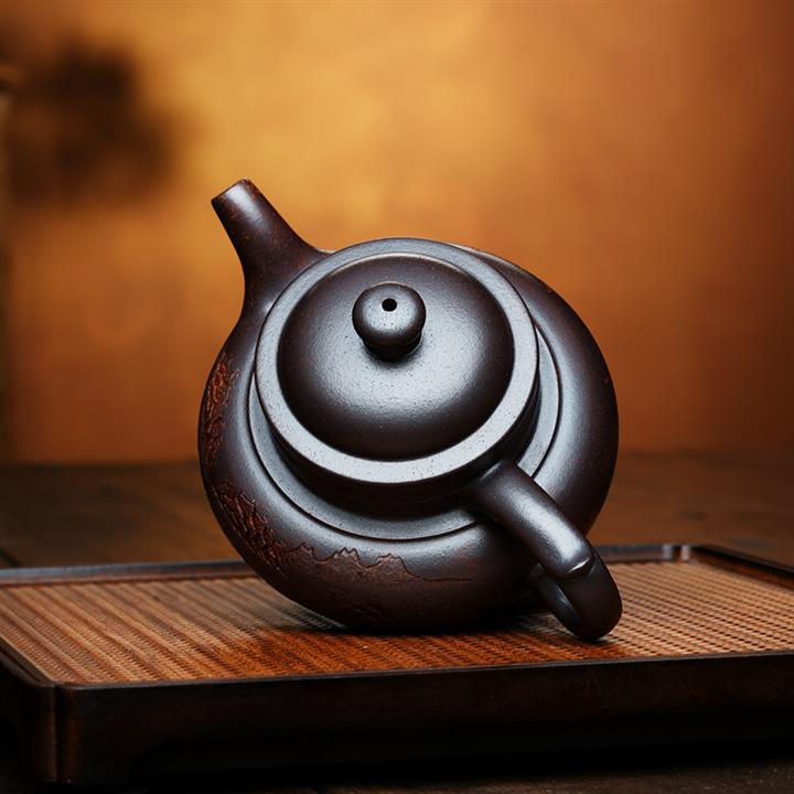 200cc原礦紫泥刻繪周盤茶壺POT8958