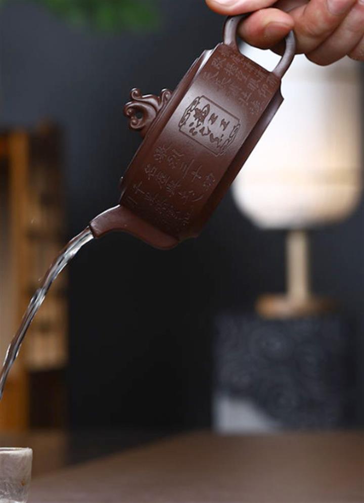 【泥料特點】砂土氣重,似淳實農民,日久使用,漸露鋒芒,養成變化,溫潤莊重。紫砂是壹種雙重氣孔結構的多孔性材質,氣孔微細,密度高。用紫砂壺沏茶,不失原味,且香不渙散,得茶之真香真味。紫砂使用越久,壺身色澤越發光亮照人,氣韻溫雅。紫砂壺長久使用器身會因撫摸擦拭,變得越發溫潤光澤。