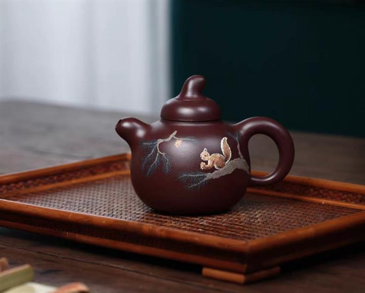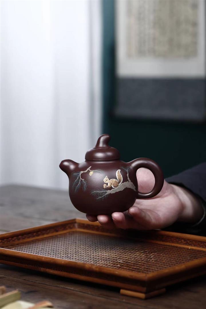 250CC原礦紫泥道洪金瓜松鼠茶壺POT8959