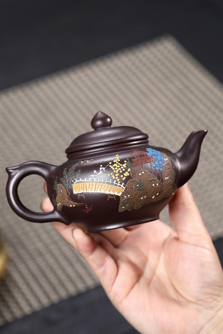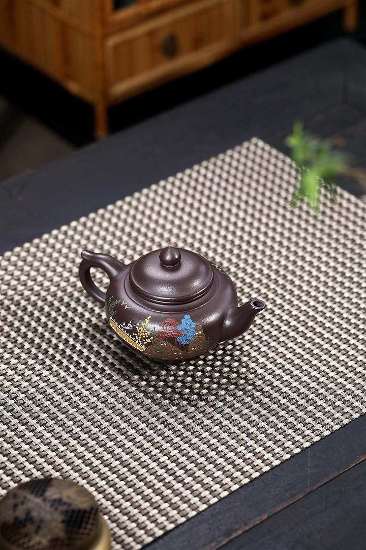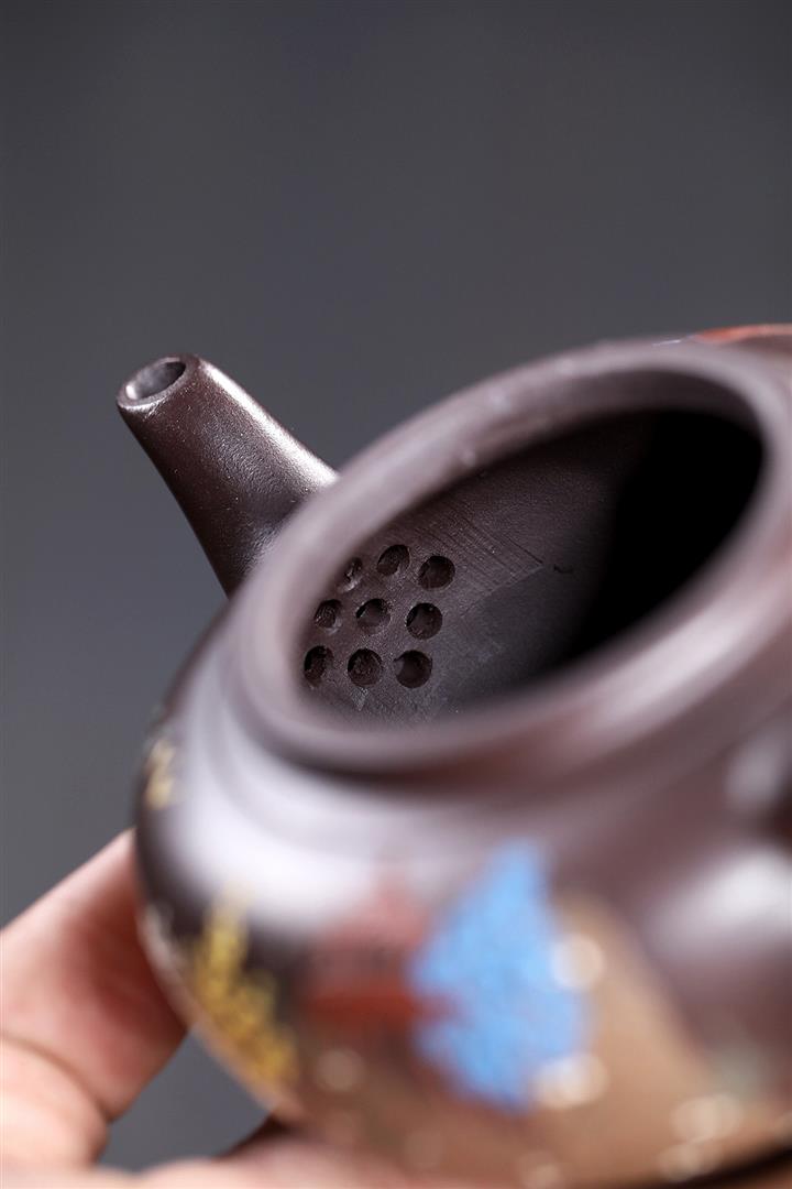200cc原礦紫朱泥泥繪笑櫻茶壺POT8963