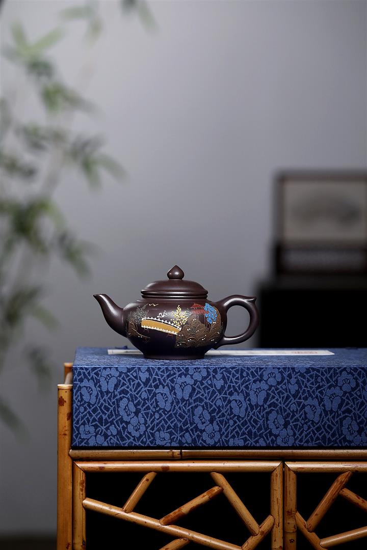 【作品介紹】此款壺形線條流暢,壺把,壺嘴,壺身壹氣呵成栩栩如生,是收藏把玩的好壺,泥料色澤古樸典雅,日久使用,漸露鋒芒,養成變化快,溫潤莊重,用其泡茶,使用的年代久,壺身就溫潤,泡出來的茶湯也就醇郁芳馨。