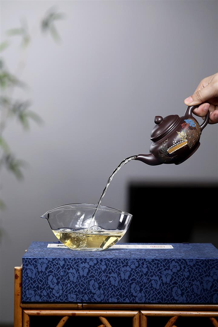 【泥料特點】砂土氣重,似淳實農民,日久使用,漸露鋒芒,養成變化,溫潤莊重。紫砂是壹種雙重氣孔結構的多孔性材質,氣孔微細,密度高。用紫砂壺沏茶,不失原味,且香不渙散,得茶之真香真味。紫砂使用越久,壺身色澤越發光亮照人,氣韻溫雅。紫砂壺長久使用器身會因撫摸擦拭,變得越發溫潤光澤。