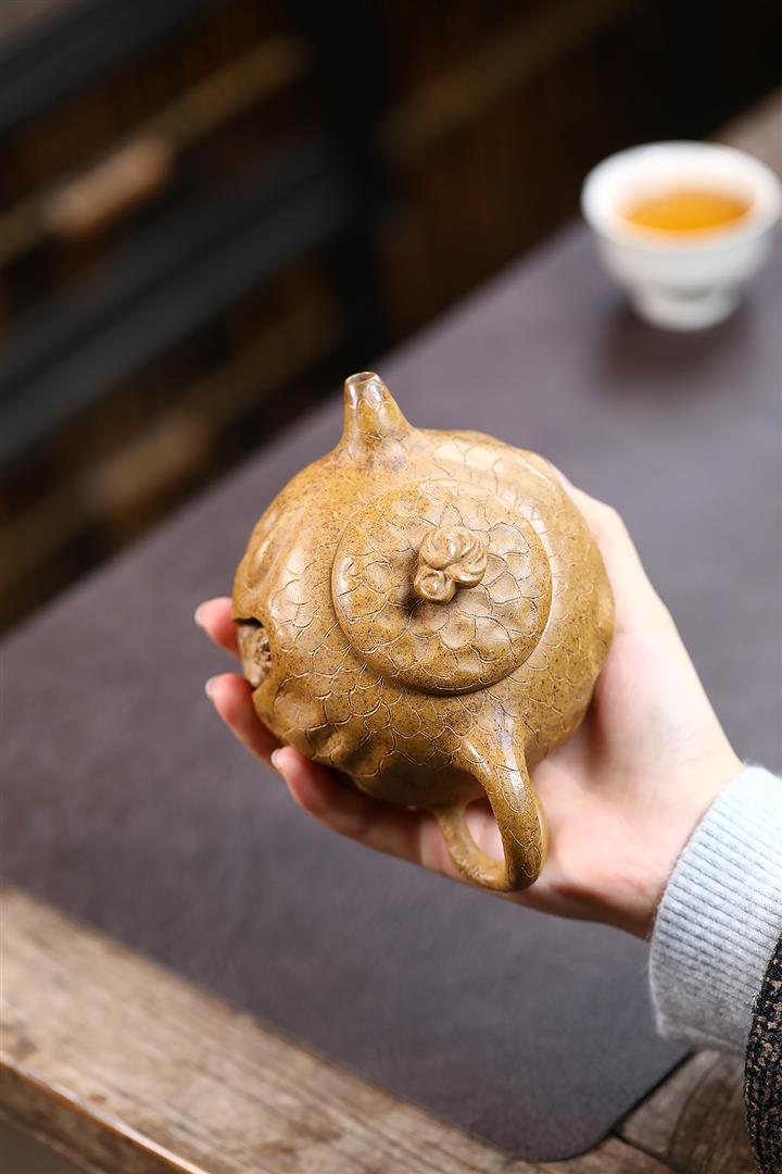 280cc原礦龍骨金砂蓮花提梁茶壺POT8970