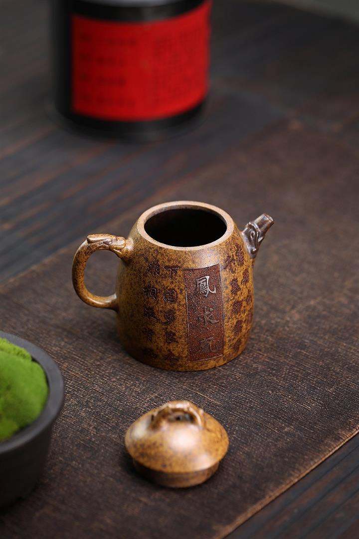 200cc原礦黃金段泥火焰燒浴火明爐茶壺POT8999