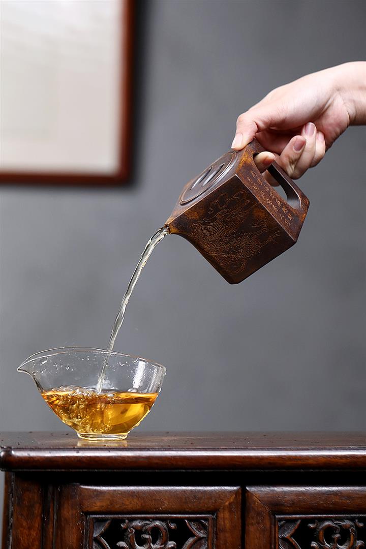 【泥料特點】砂土氣重,似淳實農民,日久使用,漸露鋒芒,養成變化,溫潤莊重。紫砂是壹種雙重氣孔結構的多孔性材質,氣孔微細,密度高。用紫砂壺沏茶,不失原味,且香不渙散,得茶之真香真味。紫砂使用越久,壺身色澤越發光亮照人,氣韻溫雅。紫砂壺長久使用器身會因撫摸擦拭,變得越發溫潤光澤。