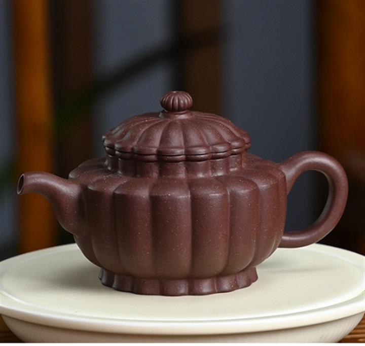 180cc原礦紫泥純手工折肩菊瓣筋紋茶壺POT9005