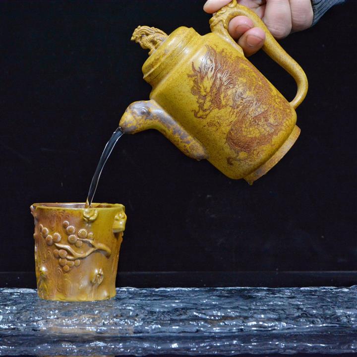 【泥料特點】砂土氣重,似淳實農民,日久使用,漸露鋒芒,養成變化,溫潤莊重。紫砂是壹種雙重氣孔結構的多孔性材質,氣孔微細,密度高。用紫砂壺沏茶,不失原味,且香不渙散,得茶之真香真味。紫砂使用越久,壺身色澤越發光亮照人,氣韻溫雅。紫砂壺長久使用器身會因撫摸擦拭,變得越發溫潤光澤。