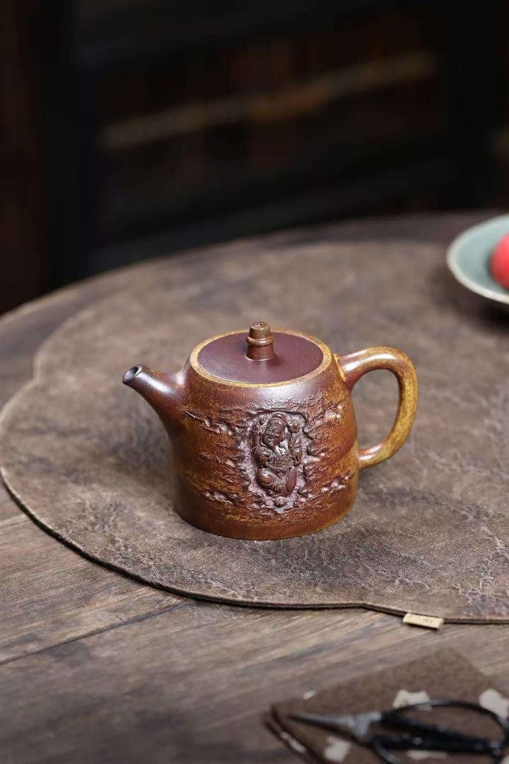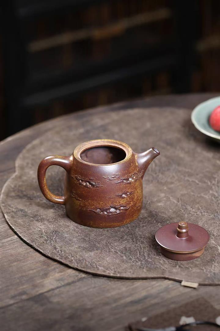 280cc原礦骨金砂柴燒洋桶提梁浮雕紋龍茶壺POT9033