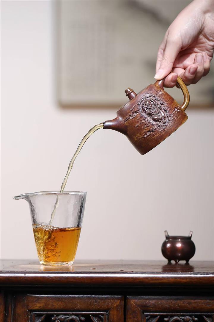 【泥料特點】砂土氣重,似淳實農民,日久使用,漸露鋒芒,養成變化,溫潤莊重。紫砂是壹種雙重氣孔結構的多孔性材質,氣孔微細,密度高。用紫砂壺沏茶,不失原味,且香不渙散,得茶之真香真味。紫砂使用越久,壺身色澤越發光亮照人,氣韻溫雅。紫砂壺長久使用器身會因撫摸擦拭,變得越發溫潤光澤。