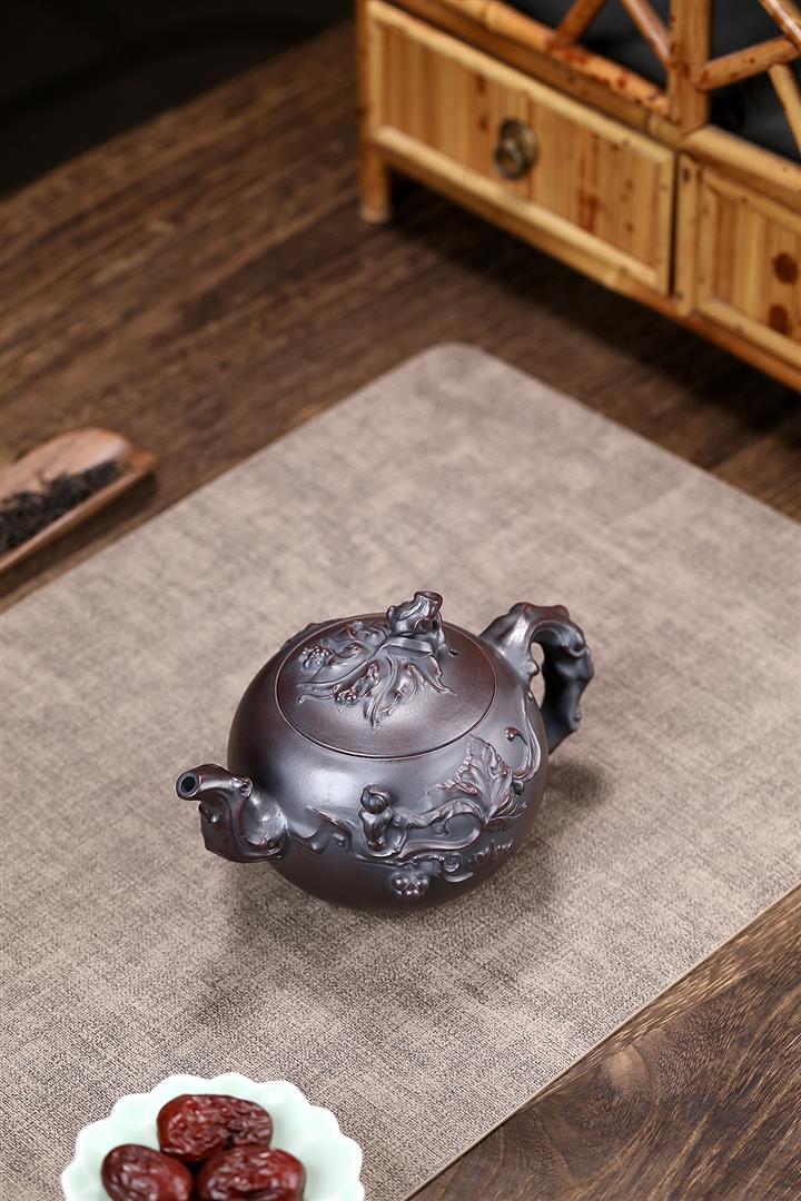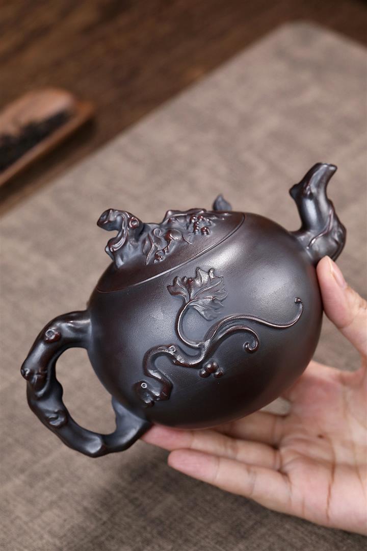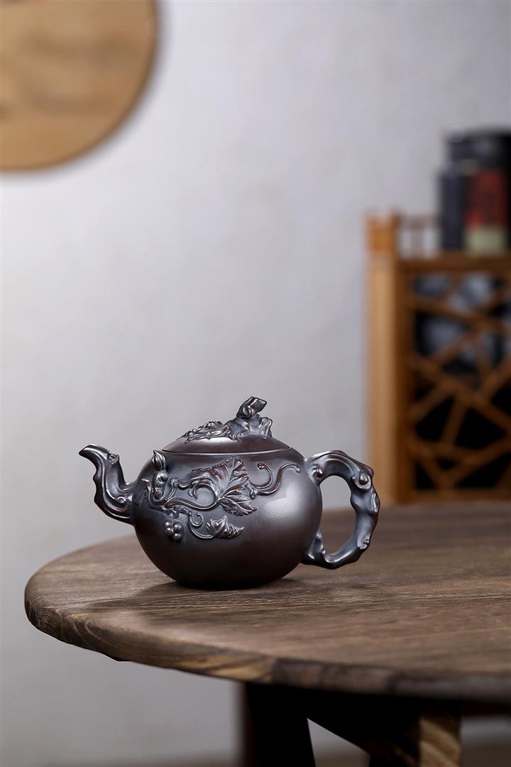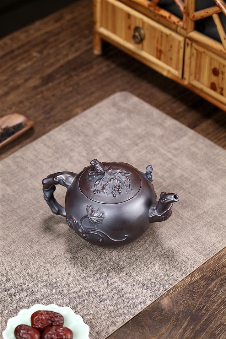 410cc原礦古銅泥松鼠葡萄茶壺POT9028