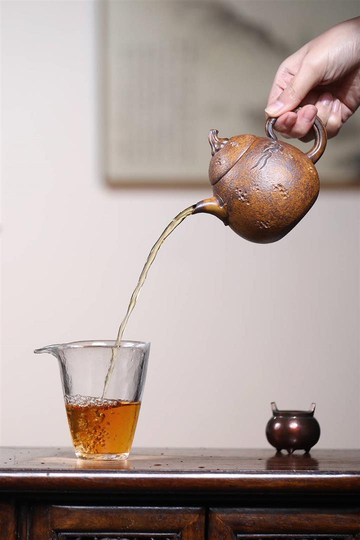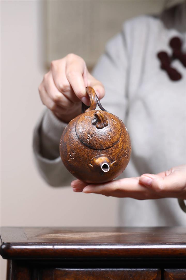 【泥料特點】砂土氣重,似淳實農民,日久使用,漸露鋒芒,養成變化,溫潤莊重。紫砂是壹種雙重氣孔結構的多孔性材質,氣孔微細,密度高。用紫砂壺沏茶,不失原味,且香不渙散,得茶之真香真味。紫砂使用越久,壺身色澤越發光亮照人,氣韻溫雅。紫砂壺長久使用器身會因撫摸擦拭,變得越發溫潤光澤。