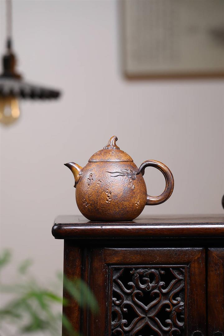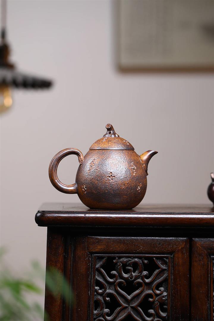 150cc原礦描銀鋪砂雪花紫泥柿柿如意漢瓦茶壺POT9041
