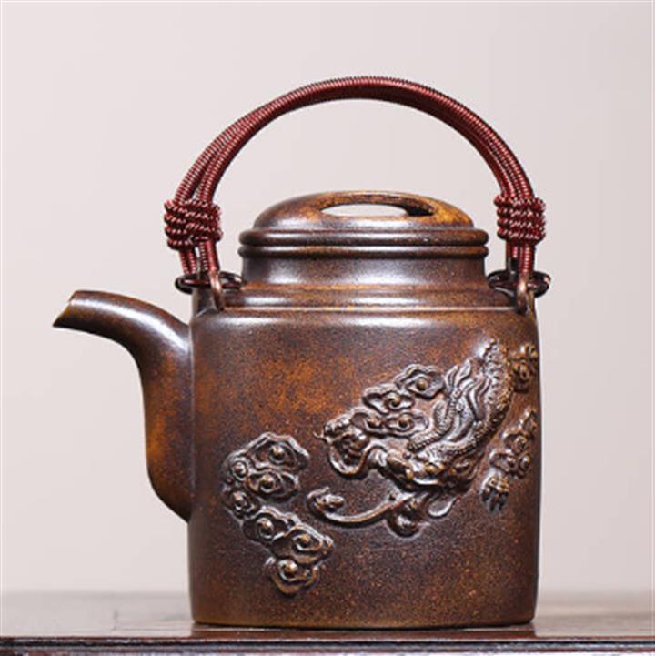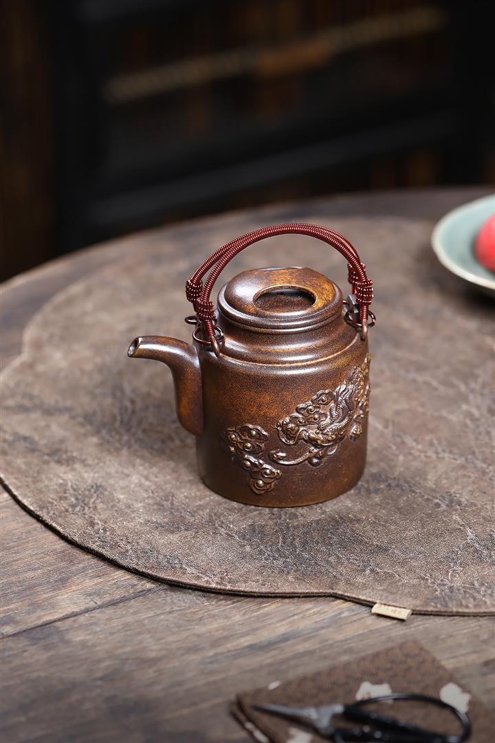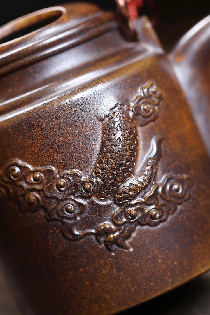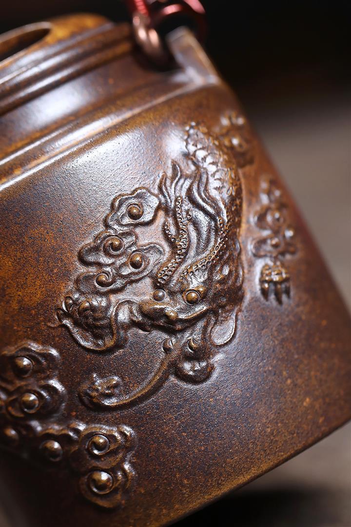 280cc原礦骨金砂柴燒洋桶提梁浮雕紋龍茶壺POT9033