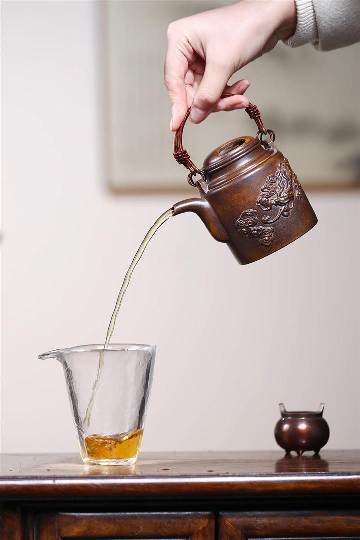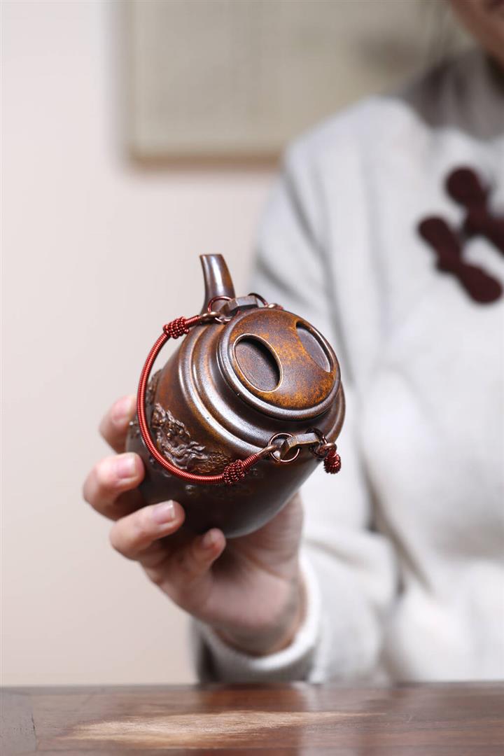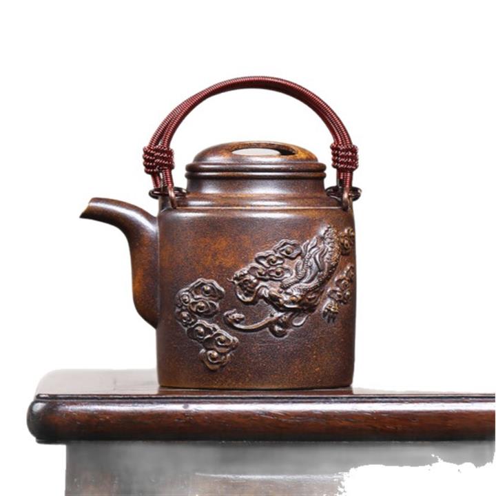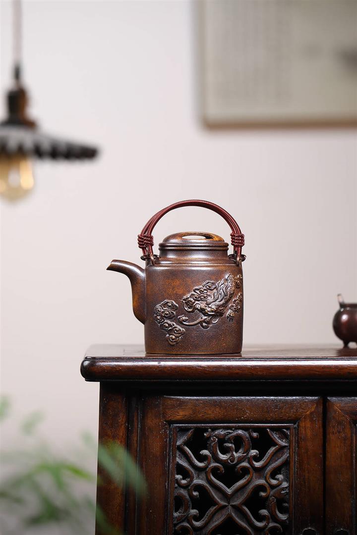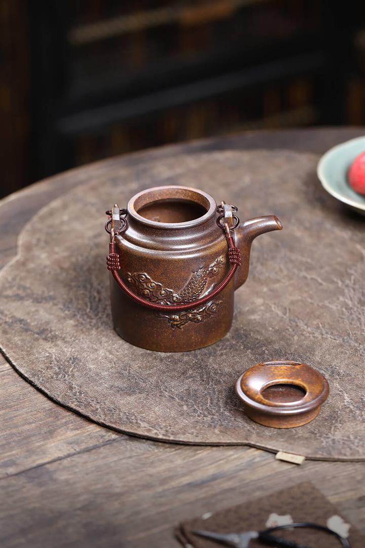 280cc原礦骨金砂柴燒洋桶提梁浮雕紋龍茶壺POT9033