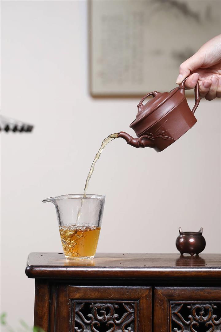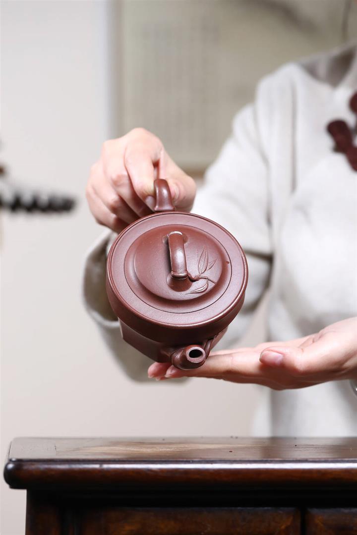 【泥料特點】砂土氣重,似淳實農民,日久使用,漸露鋒芒,養成變化,溫潤莊重。紫砂是壹種雙重氣孔結構的多孔性材質,氣孔微細,密度高。用紫砂壺沏茶,不失原味,且香不渙散,得茶之真香真味。紫砂使用越久,壺身色澤越發光亮照人,氣韻溫雅。紫砂壺長久使用器身會因撫摸擦拭,變得越發溫潤光澤。