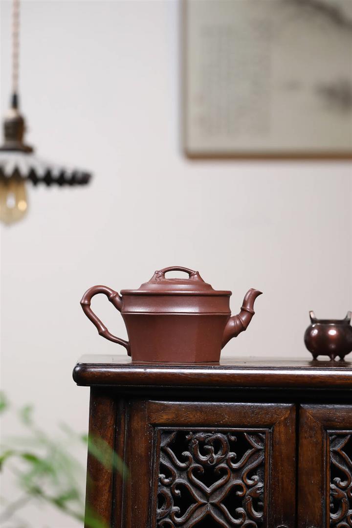 290cc原礦紫泥六方壽桃福源茶壺茶壺POT9038