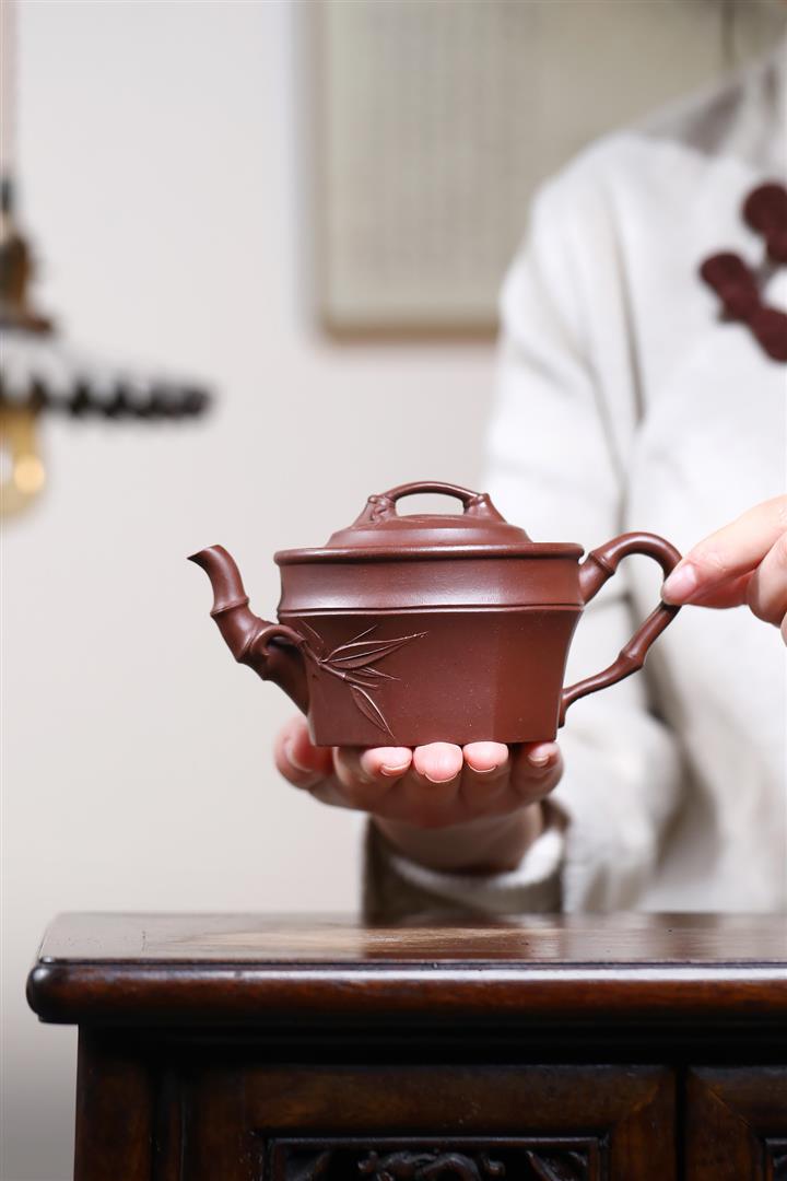 240cc龍山古烏泥山水四方竹段茶壺POT9036