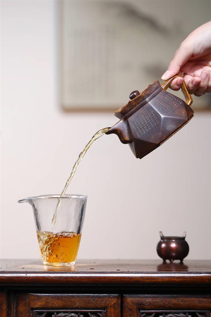 【泥料特點】砂土氣重,似淳實農民,日久使用,漸露鋒芒,養成變化,溫潤莊重。紫砂是壹種雙重氣孔結構的多孔性材質,氣孔微細,密度高。用紫砂壺沏茶,不失原味,且香不渙散,得茶之真香真味。紫砂使用越久,壺身色澤越發光亮照人,氣韻溫雅。紫砂壺長久使用器身會因撫摸擦拭,變得越發溫潤光澤。