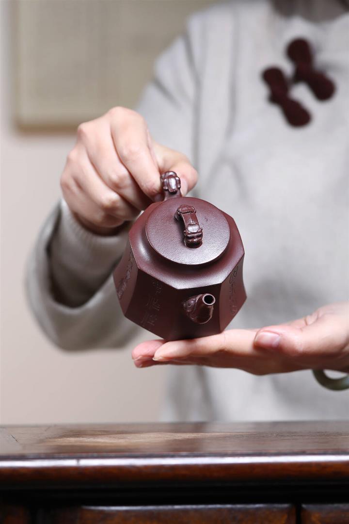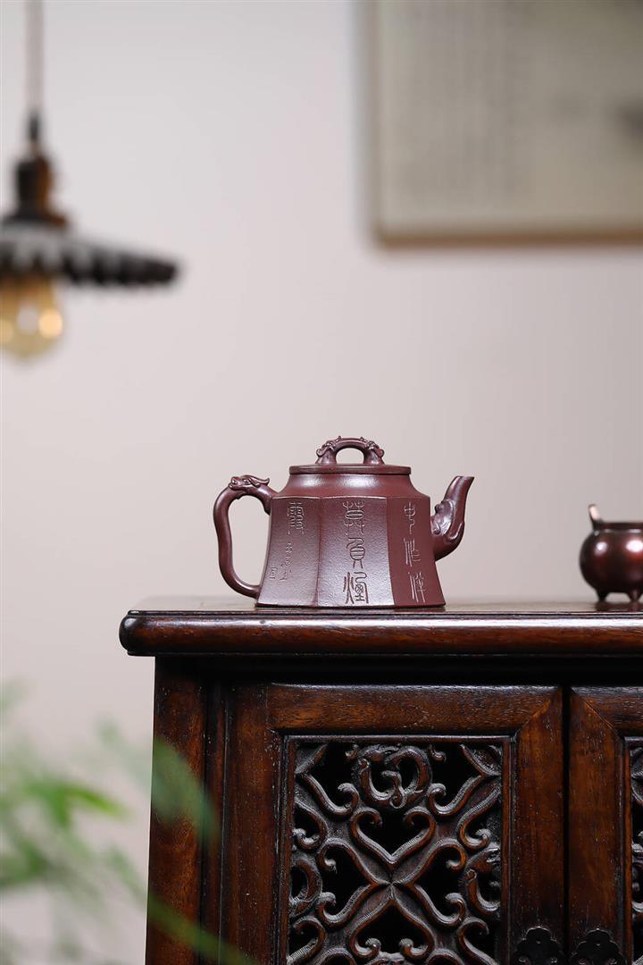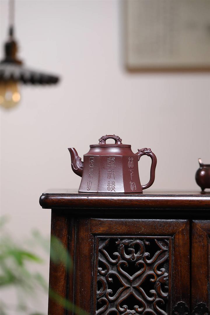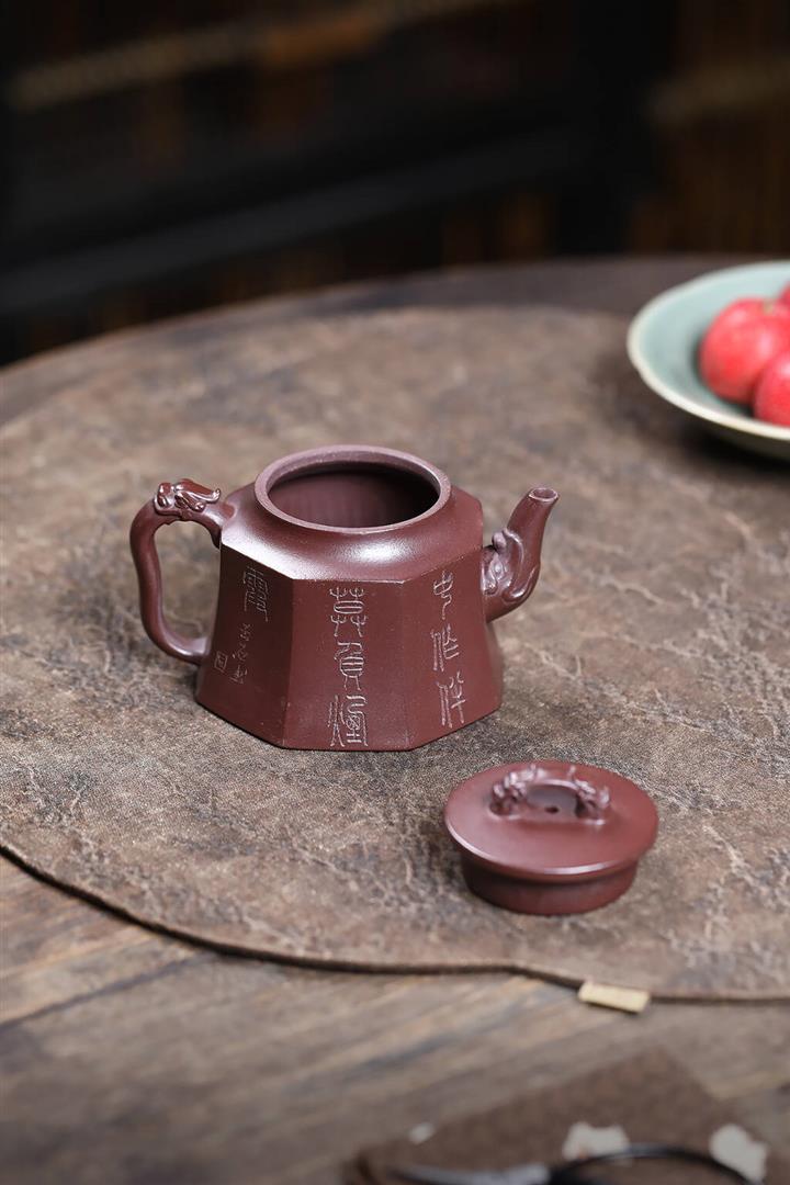 290cc原礦紫泥六方壽桃福源茶壺茶壺POT9038