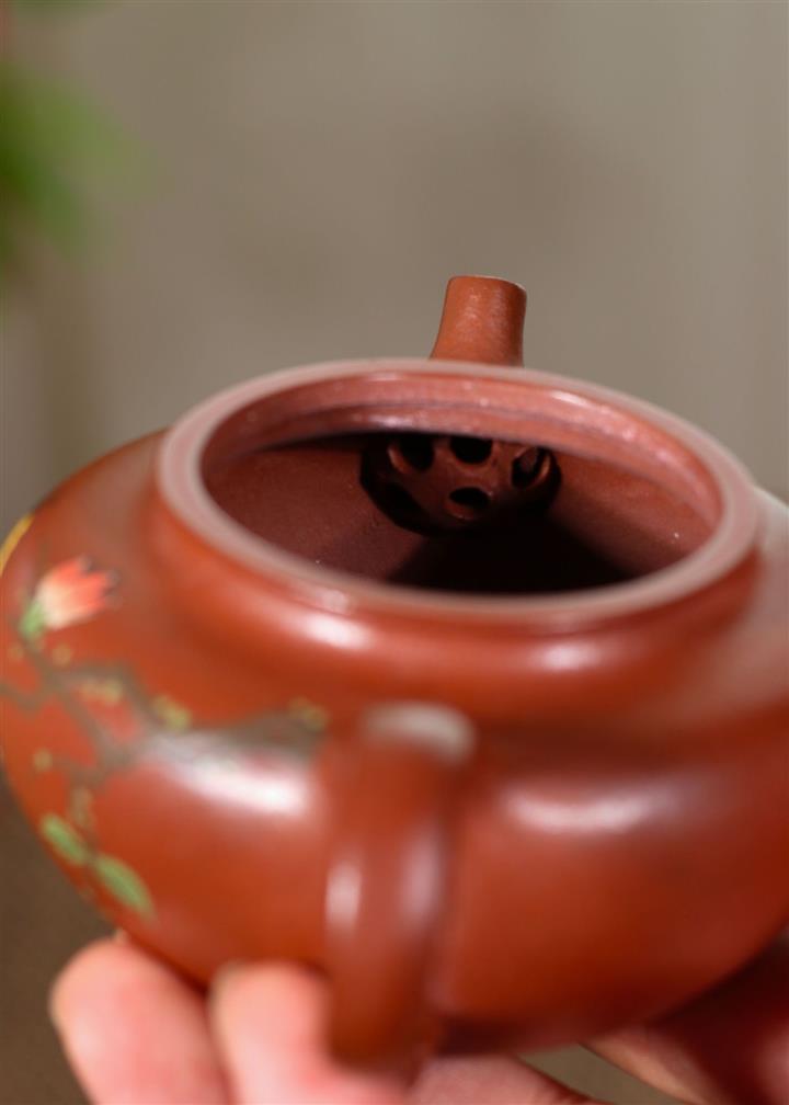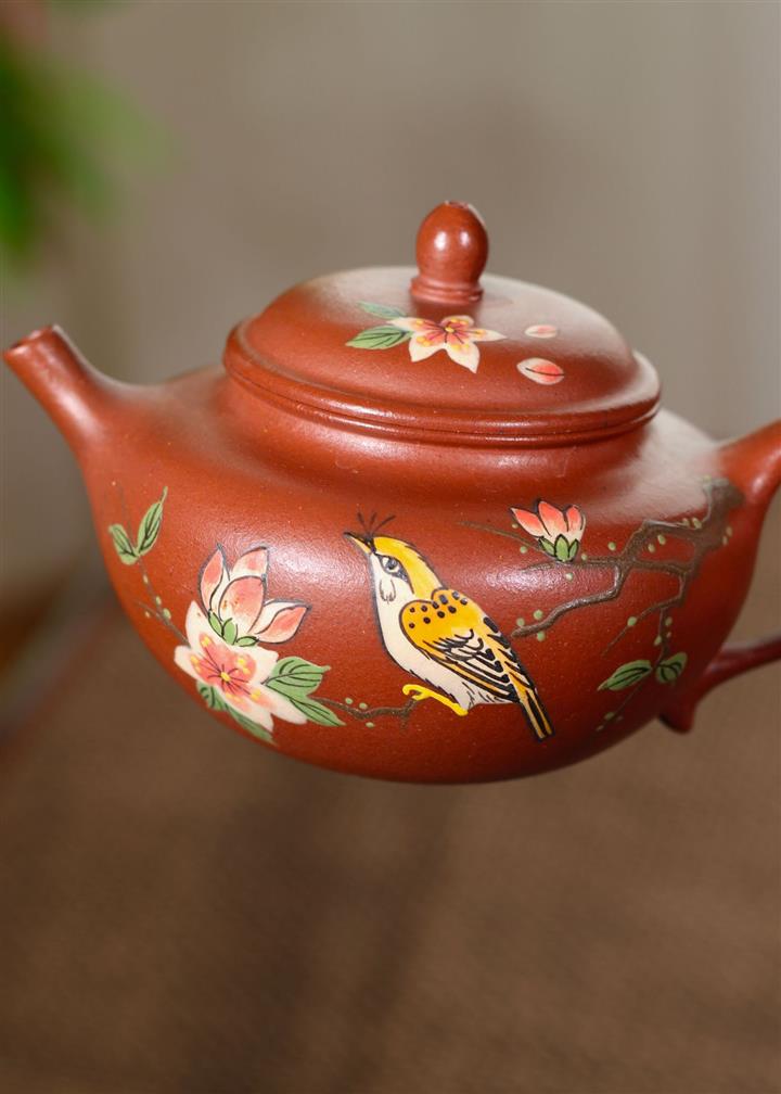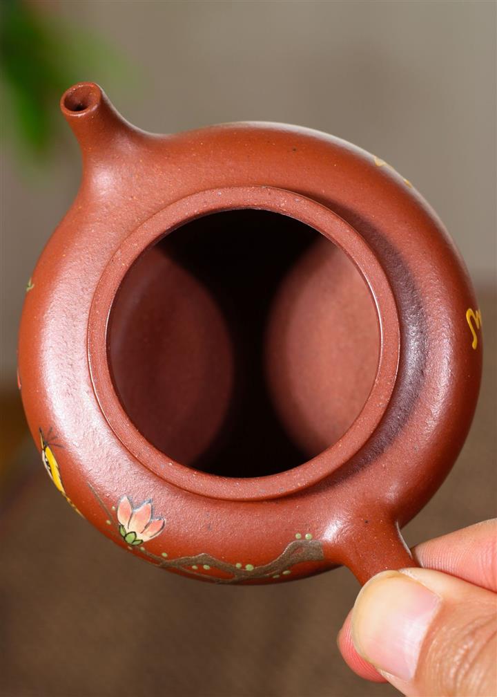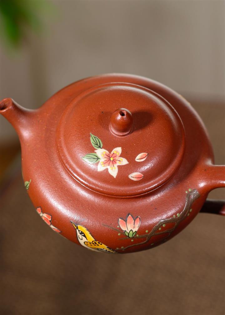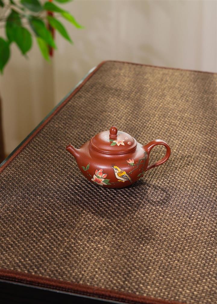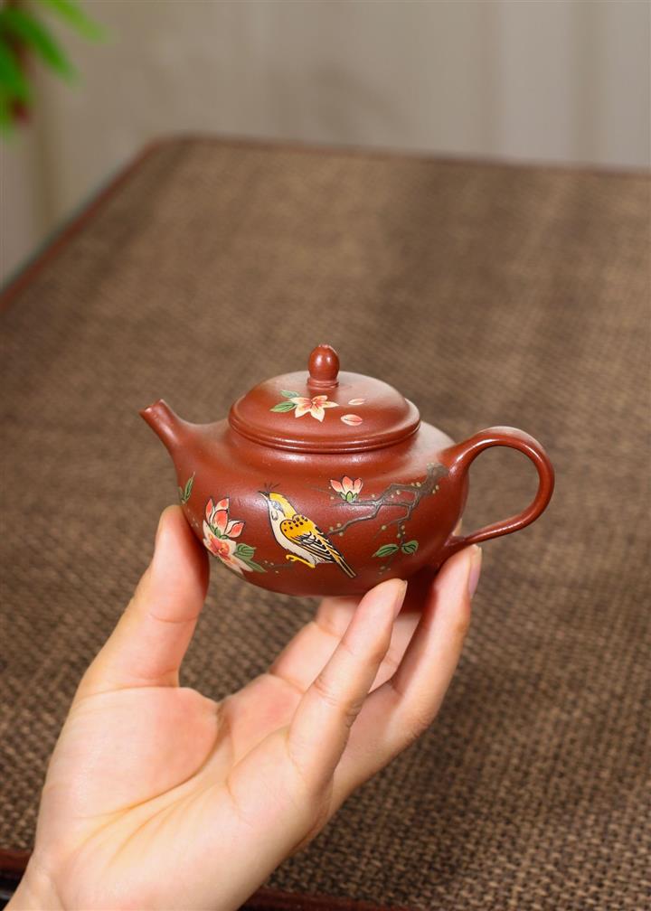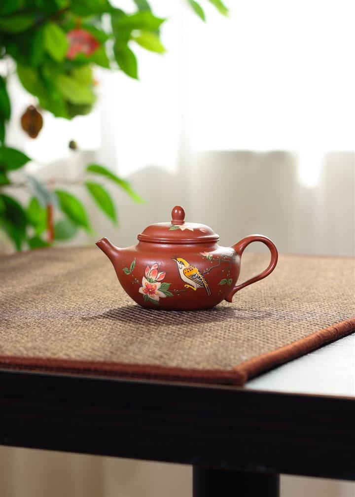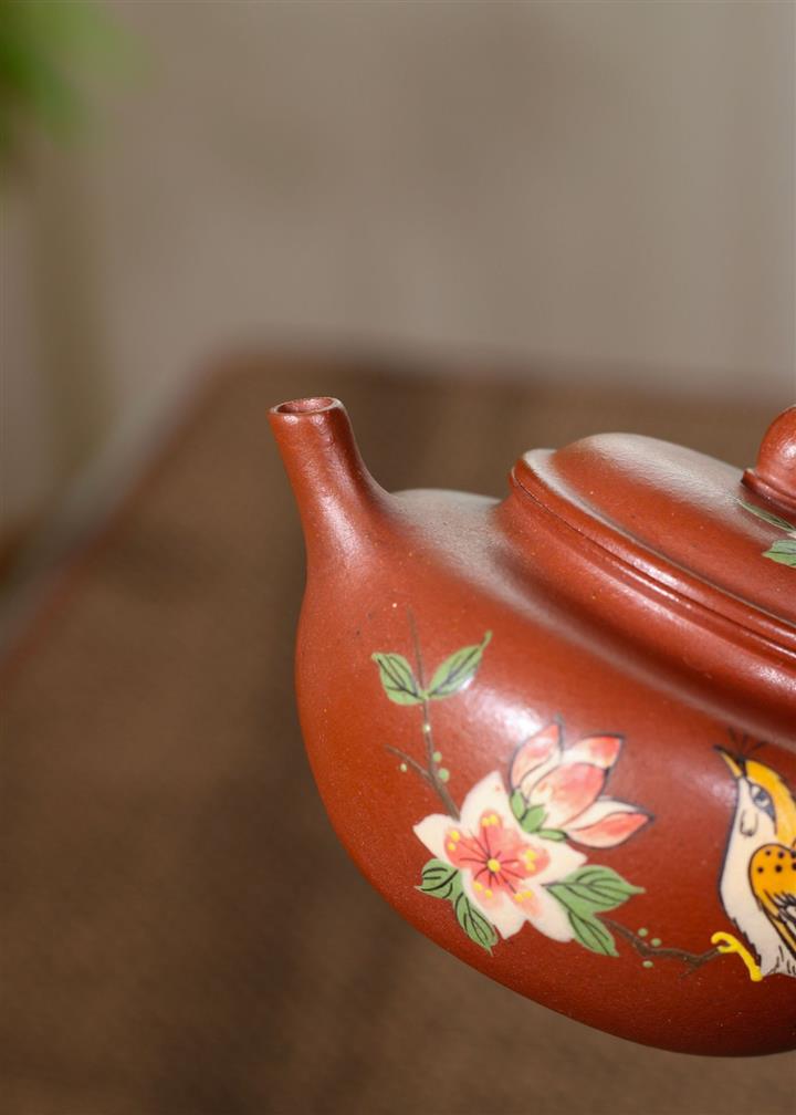 140cc原礦小紅泥泥繪花鳥邀月茶壺POT9048
