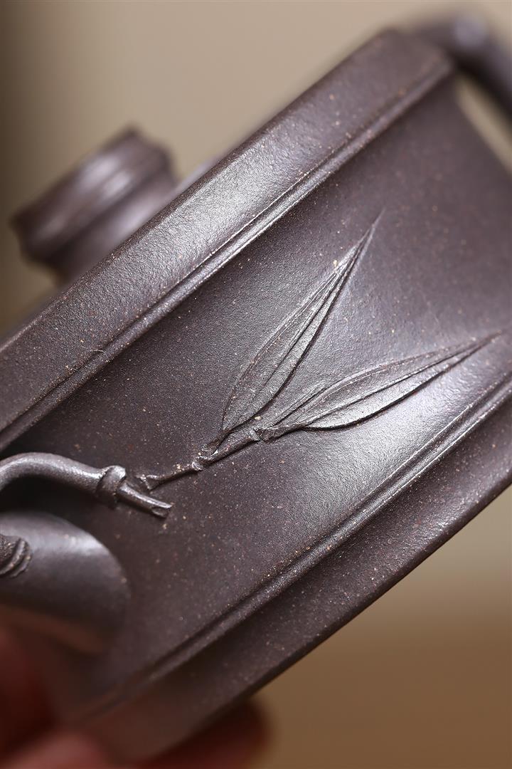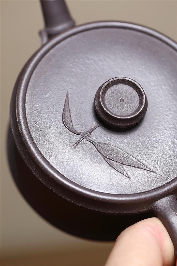 480cc原礦古銅烏泥滿刻見山漢瓦茶壺POT9051