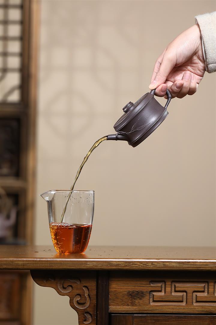 【泥料特點】砂土氣重,似淳實農民,日久使用,漸露鋒芒,養成變化,溫潤莊重。紫砂是壹種雙重氣孔結構的多孔性材質,氣孔微細,密度高。用紫砂壺沏茶,不失原味,且香不渙散,得茶之真香真味。紫砂使用越久,壺身色澤越發光亮照人,氣韻溫雅。紫砂壺長久使用器身會因撫摸擦拭,變得越發溫潤光澤。