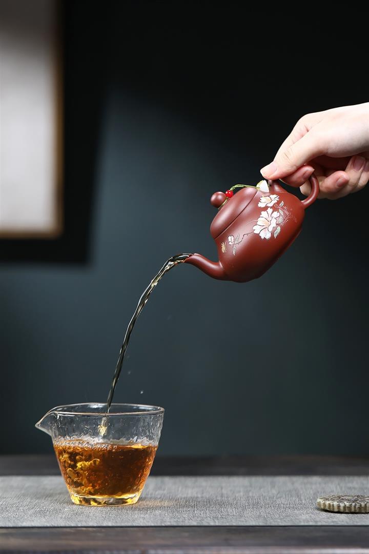 【泥料特點】砂土氣重,似淳實農民,日久使用,漸露鋒芒,養成變化,溫潤莊重。紫砂是壹種雙重氣孔結構的多孔性材質,氣孔微細,密度高。用紫砂壺沏茶,不失原味,且香不渙散,得茶之真香真味。紫砂使用越久,壺身色澤越發光亮照人,氣韻溫雅。紫砂壺長久使用器身會因撫摸擦拭,變得越發溫潤光澤。