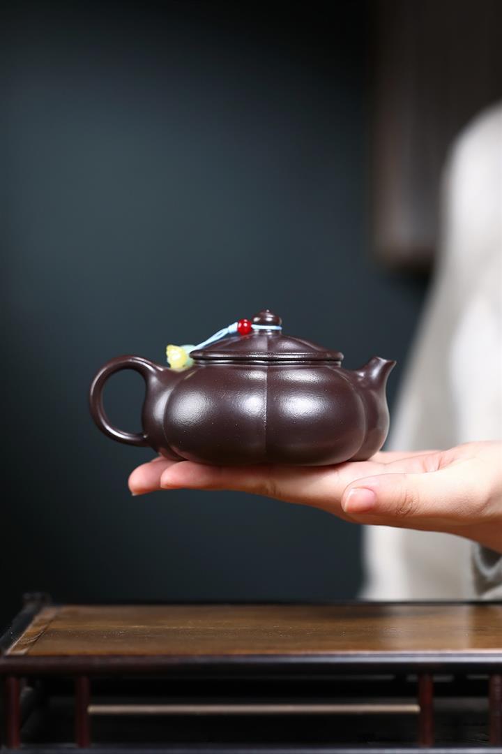 260cc原礦黑朱泥金縷井欄茶壺POT9054