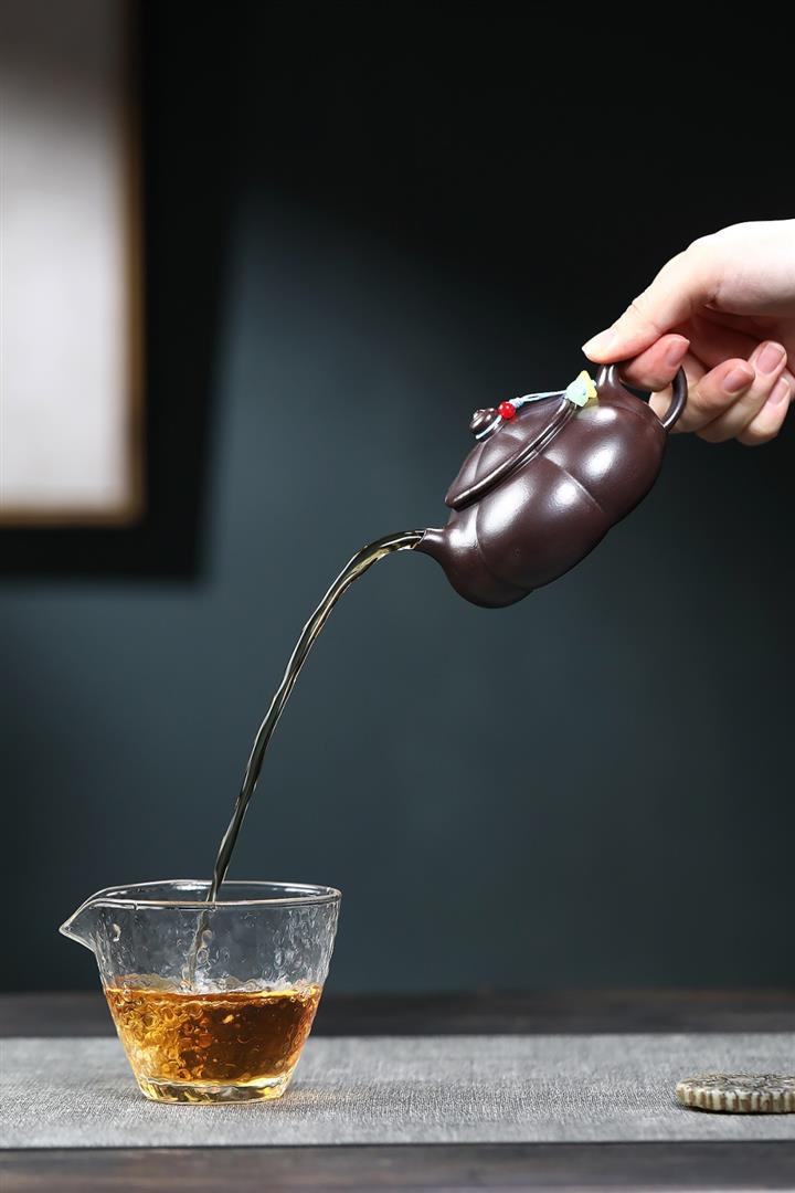 【泥料特點】砂土氣重,似淳實農民,日久使用,漸露鋒芒,養成變化,溫潤莊重。紫砂是壹種雙重氣孔結構的多孔性材質,氣孔微細,密度高。用紫砂壺沏茶,不失原味,且香不渙散,得茶之真香真味。紫砂使用越久,壺身色澤越發光亮照人,氣韻溫雅。紫砂壺長久使用器身會因撫摸擦拭,變得越發溫潤光澤。