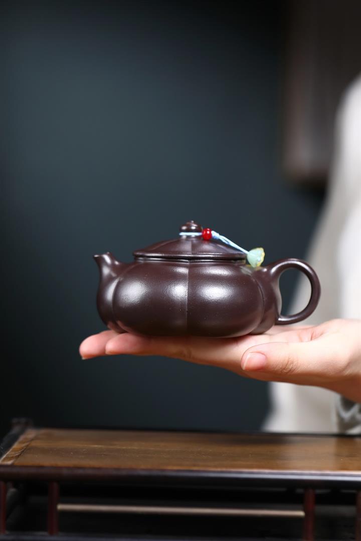 200cc原礦紫泥光素筋紋紫玉寒江茶壺茶壺POT9053