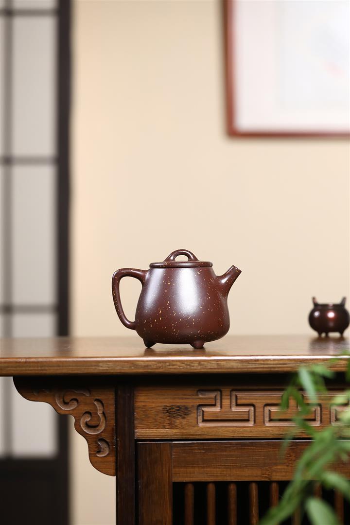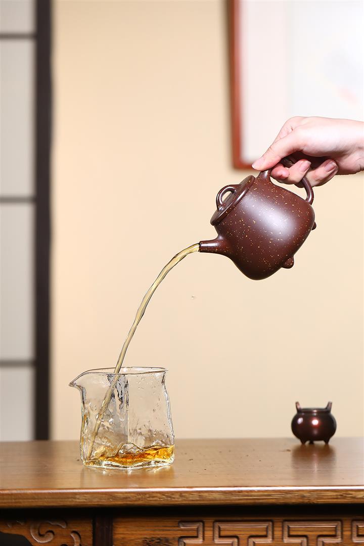 【泥料特點】砂土氣重,似淳實農民,日久使用,漸露鋒芒,養成變化,溫潤莊重。紫砂是壹種雙重氣孔結構的多孔性材質,氣孔微細,密度高。用紫砂壺沏茶,不失原味,且香不渙散,得茶之真香真味。紫砂使用越久,壺身色澤越發光亮照人,氣韻溫雅。紫砂壺長久使用器身會因撫摸擦拭,變得越發溫潤光澤。