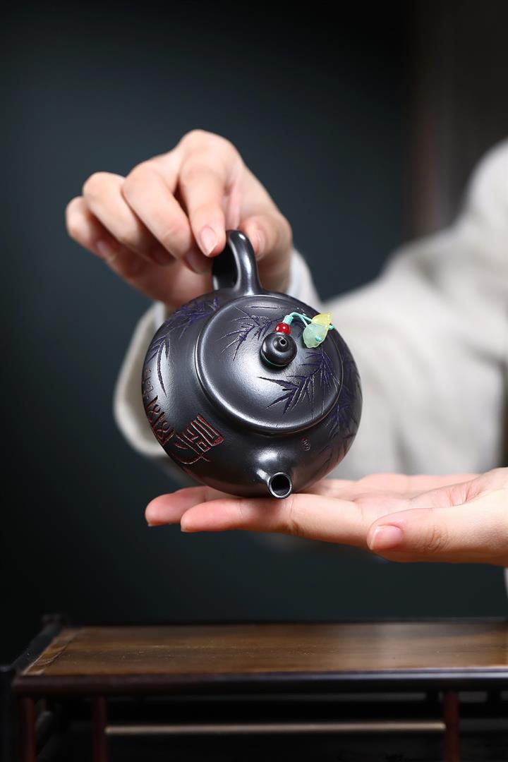 【作品介紹】此款壺形線條流暢,壺把,壺嘴,壺身壹氣呵成栩栩如生,是收藏把玩的好壺,泥料色澤古樸典雅,日久使用,漸露鋒芒,養成變化快,溫潤莊重,用其泡茶,使用的年代久,壺身就溫潤,泡出來的茶湯也就醇郁芳馨。