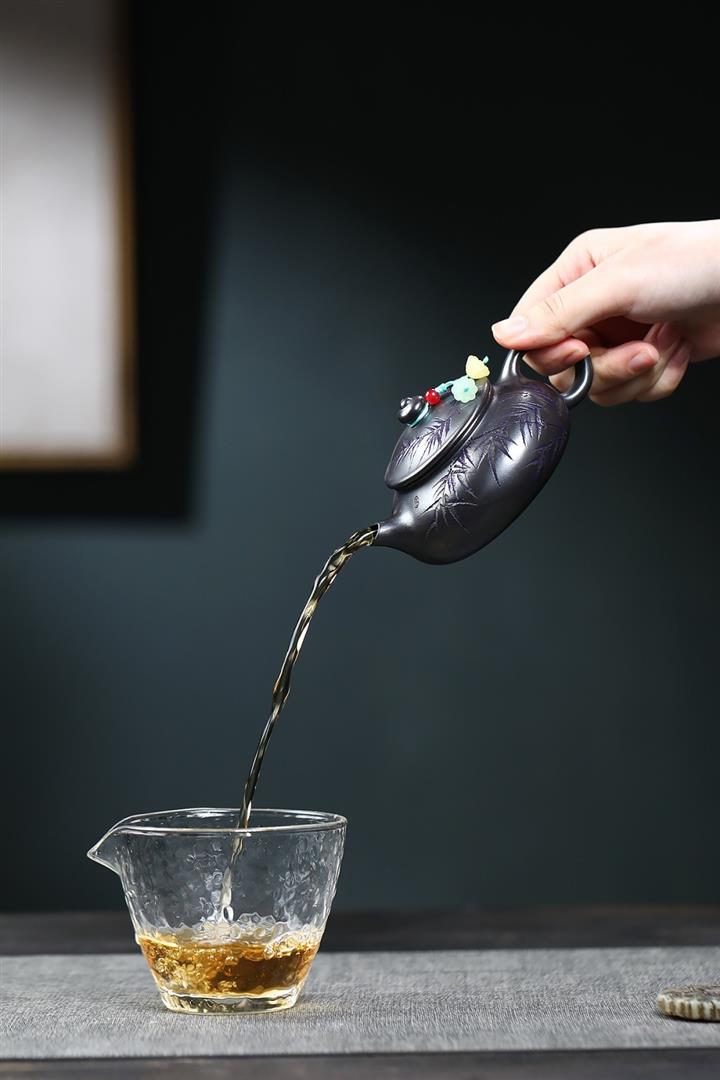 【泥料特點】砂土氣重,似淳實農民,日久使用,漸露鋒芒,養成變化,溫潤莊重。紫砂是壹種雙重氣孔結構的多孔性材質,氣孔微細,密度高。用紫砂壺沏茶,不失原味,且香不渙散,得茶之真香真味。紫砂使用越久,壺身色澤越發光亮照人,氣韻溫雅。紫砂壺長久使用器身會因撫摸擦拭,變得越發溫潤光澤。