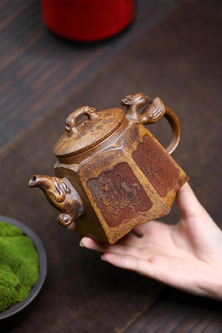 400cc原礦高溫段泥四神獸六方茶壺POT9081