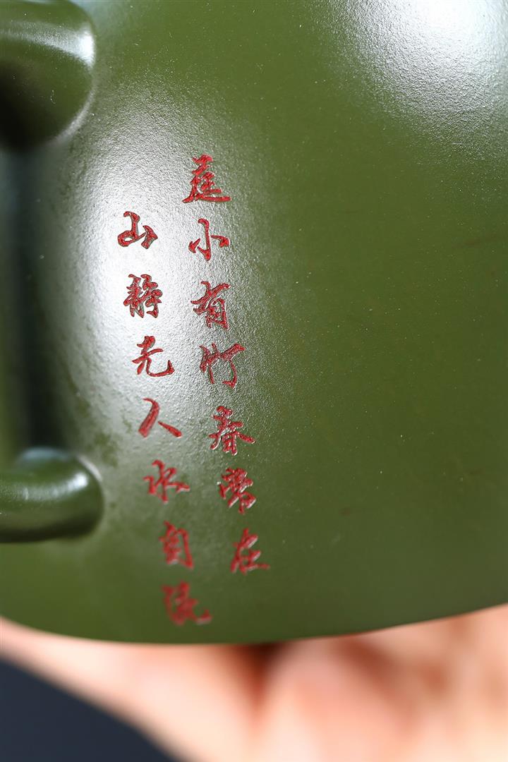 380cc原礦綠泥滿刻竹林松濤秦權茶壺POT9085