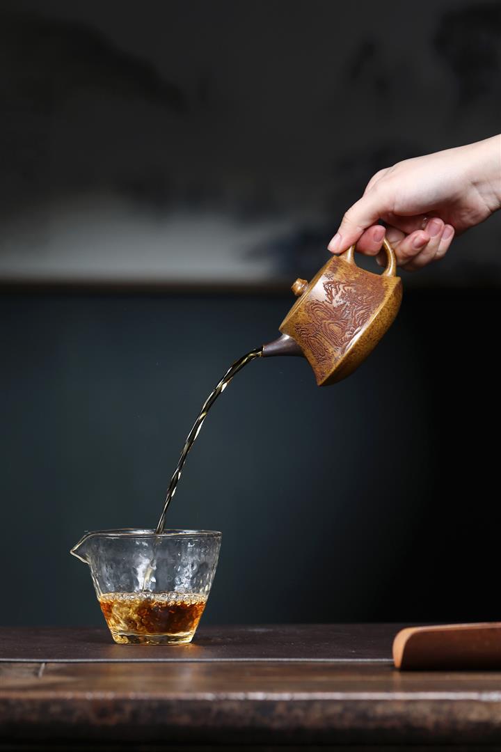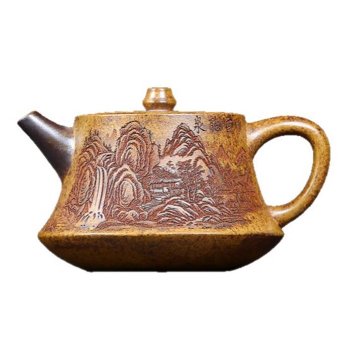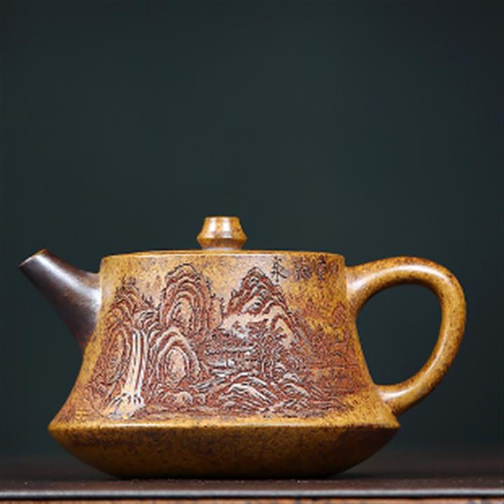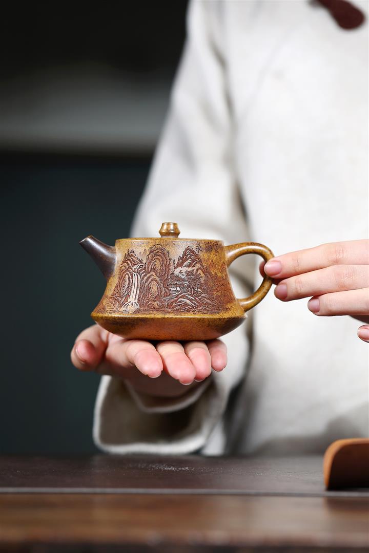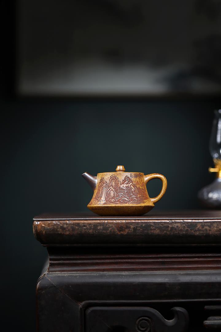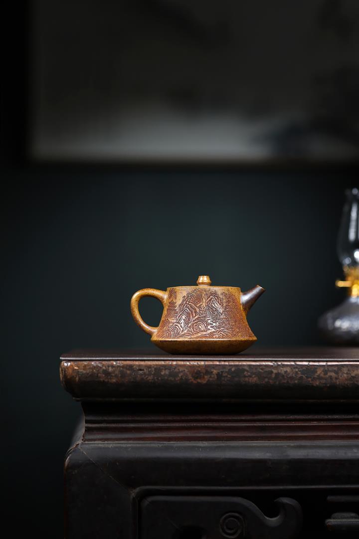 240cc原礦高溫柴燒龍骨金砂四方刻竹茶壺POT9103