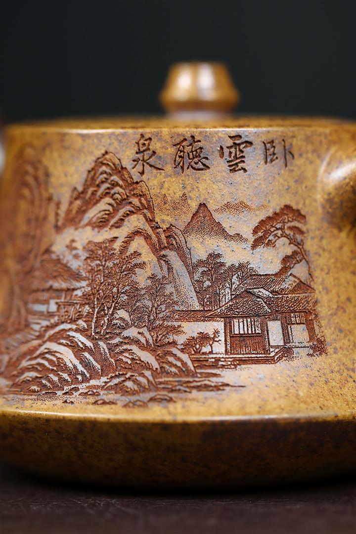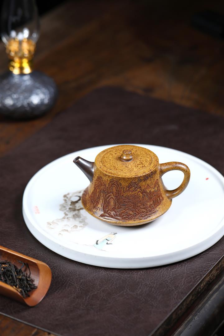 200cc原礦高溫柴燒龍骨金砂山水礎柱茶壺POT9097
