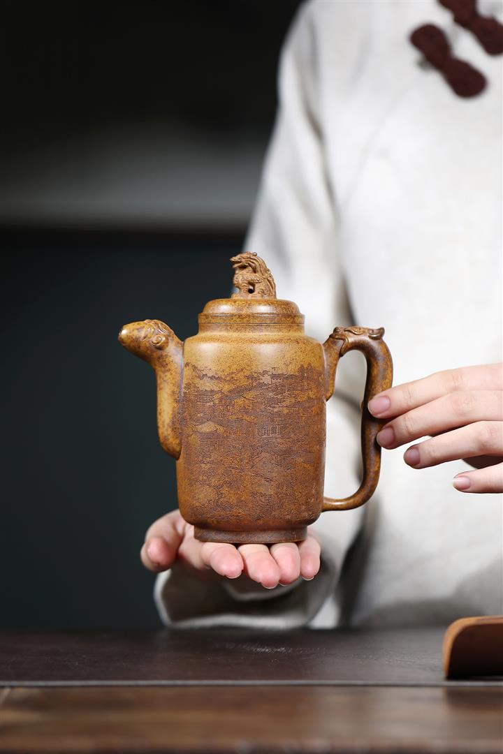 340cc原礦龍骨金砂柴燒壹帆風順提梁壺POT9101